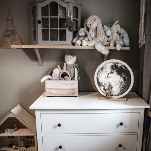 Styl skandynawski – w jasnym, stonowanym wnętrzu z naturalnymi materiałami lampka księżyc wprowadza subtelny, bajkowy akcent. Idealnie łączy się z bielą, drewnem i szarościami.