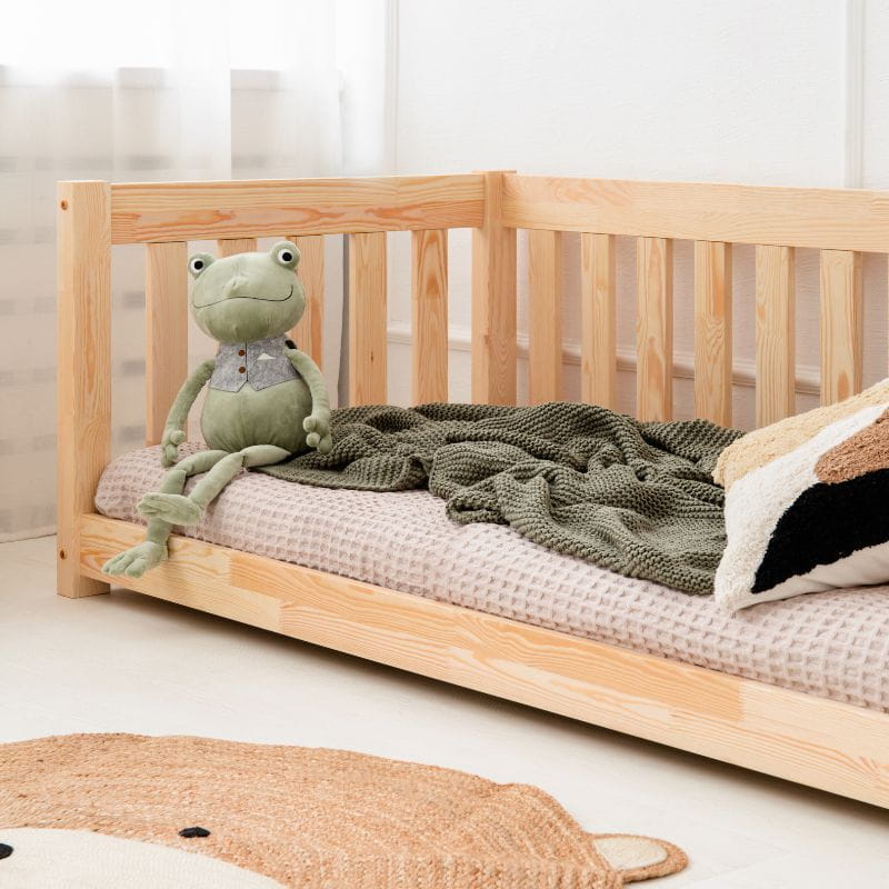 Łóżko jest bezpieczne dla dzieci, ekologiczne, wyprodukowane w Polsce z drewna sosnowego. Łóżko nie jest lakierowane, sprzedawane jest w wersji surowej, w naturalnym kolorze drewna. Sosnowe drewno używane do produkcji łóżek jest nie tylko trwałe, ale i uniwersalne w kolorystycznym dopasowaniu dodatków i pozostałych elementów pokoju.