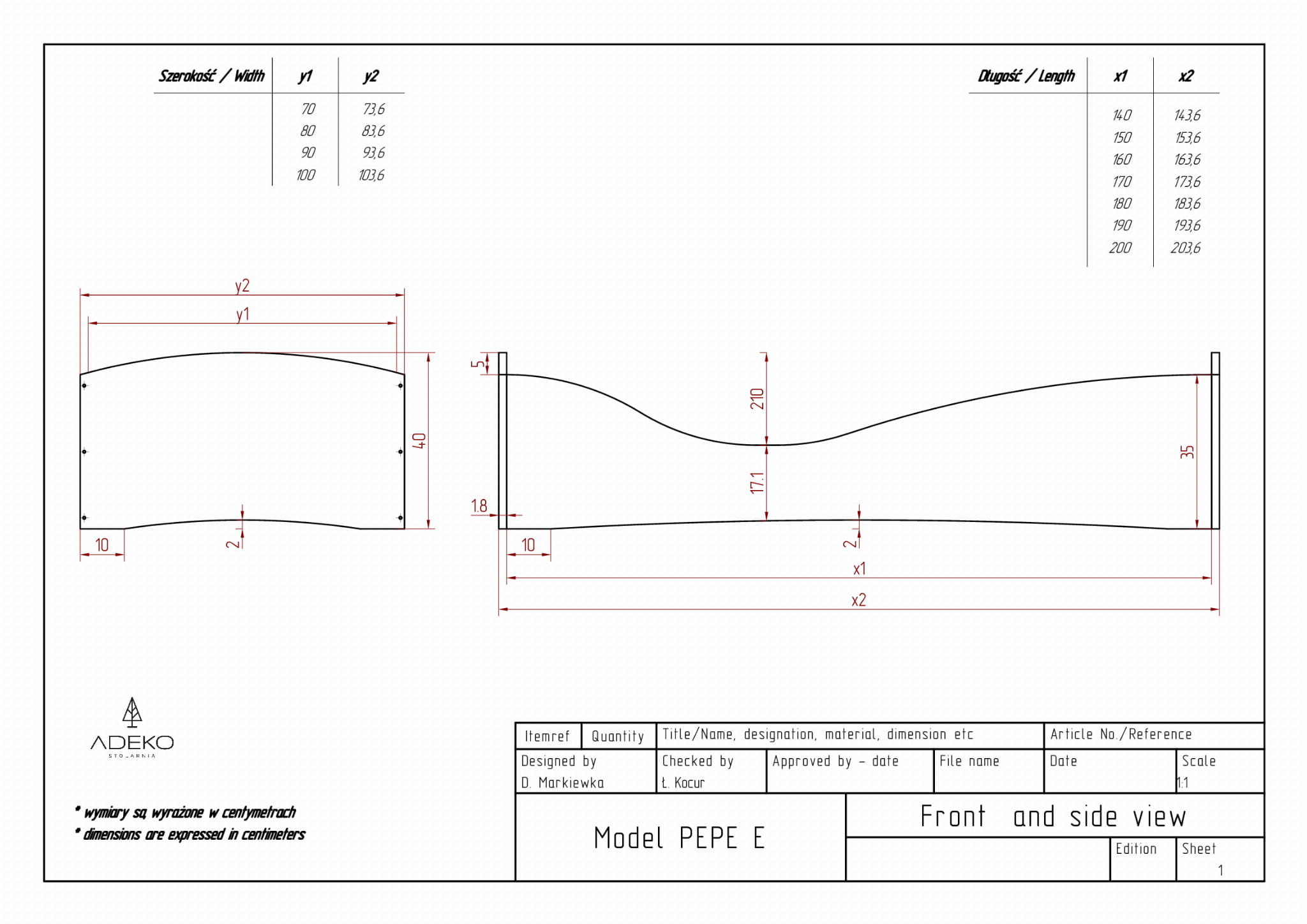 - długość: 140/160/180/190/200 cm - w zależności od wyboru (do całkowitej długości łóżka należy doliczyć 4 cm, bez względu na wybrany rozmiar)