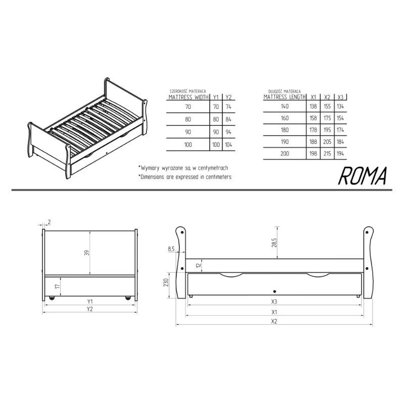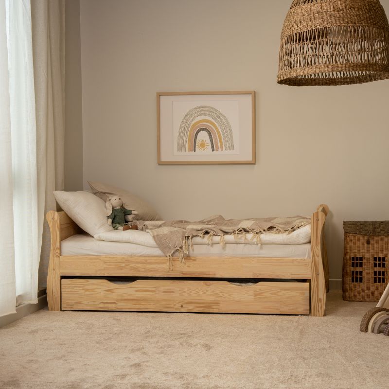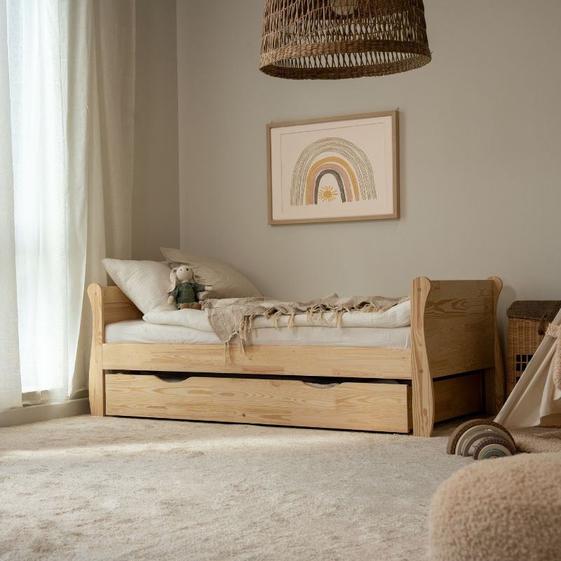 Łóżko dziecięce Roma to połączenie ponadczasowego stylu, solidnego wykonania i praktycznych rozwiązań, które sprawiają, że jest idealnym wyborem zarówno dla młodszych, jak i starszych dzieci. Wykonane z klejonego drewna sosnowego, gwarantuje wytrzymałość na lata, a jego jasny, naturalny kolor pięknie komponuje się z każdym wnętrzem. Minimalistyczny design sprawia, że łóżko doskonale pasuje zarówno do klasycznych, jak i nowoczesnych aranżacji pokoju dziecięcego.