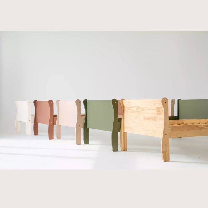 Łóżko nie zawiera materaca. Zalecana grubość materaca od 8 do 12 cm. Sprawdź naszą ofertę na materace dla dzieci Hevea!
