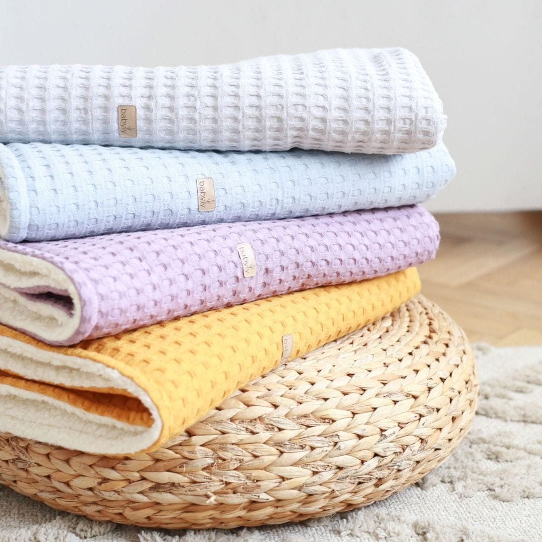 Miękki, dwustronny, bawełniany kocyk dla niemowlaka w rozmiarze 70x100 cm. Z jednej strony baranek w naturalnym kolorze, z drugiej bawełniany, szary wafelek. Dzięki takiemu połączeniu idealnie sprawdzi się w czasie jesiennych i zimowych drzemek w kołysce, łóżku lub w wózku na spacerze. Kocyk z ociepleniem zapewni maluchowi komfort podczas drzemki.