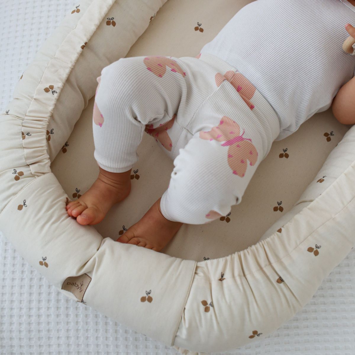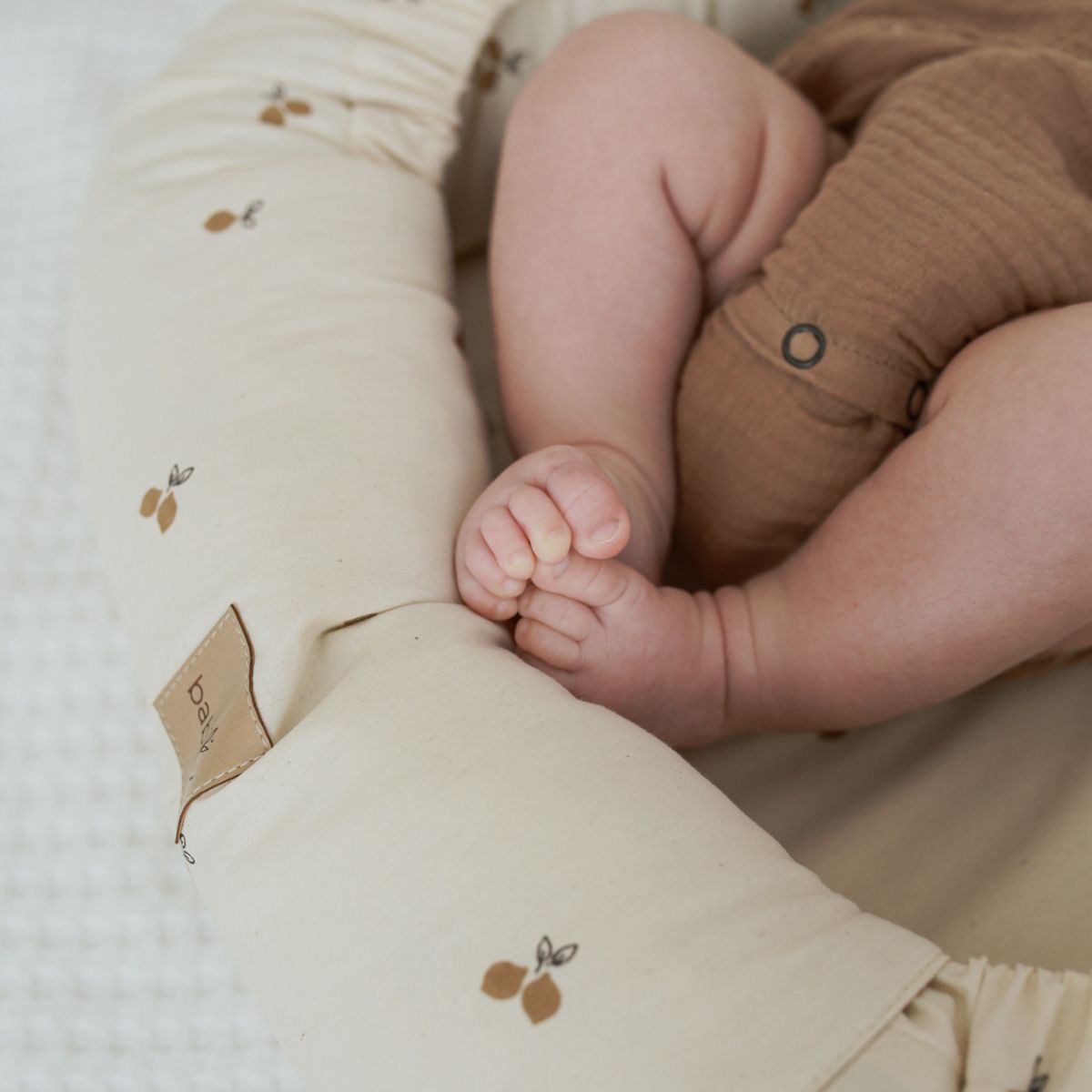 Dzięki miękkim brzegom i odpowiedniemu wypełnieniu, kokon zapewnia dziecku poczucie bezpieczeństwa, przypominając naturalne warunki znane z życia płodowego. Model MIDI Lemon wyróżnia się delikatnym, beżowym wzorem z cytrynkami, który pasuje zarówno do pokoju dziewczynki, jak i chłopca.