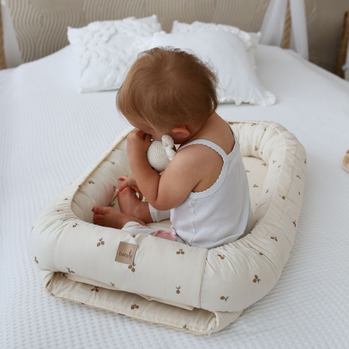 Kokon możesz stosować w łóżeczku, na kanapie, w łóżku rodziców, a także w ogrodzie czy koszu Mojżesza. Lekkie wypełnienie z kulki silikonowej i wyjmowany piankowy materacyk zapewniają optymalną miękkość i stabilizację. To praktyczne rozwiązanie na codzienne drzemki, karmienie, a także spokojne chwile z dzieckiem.