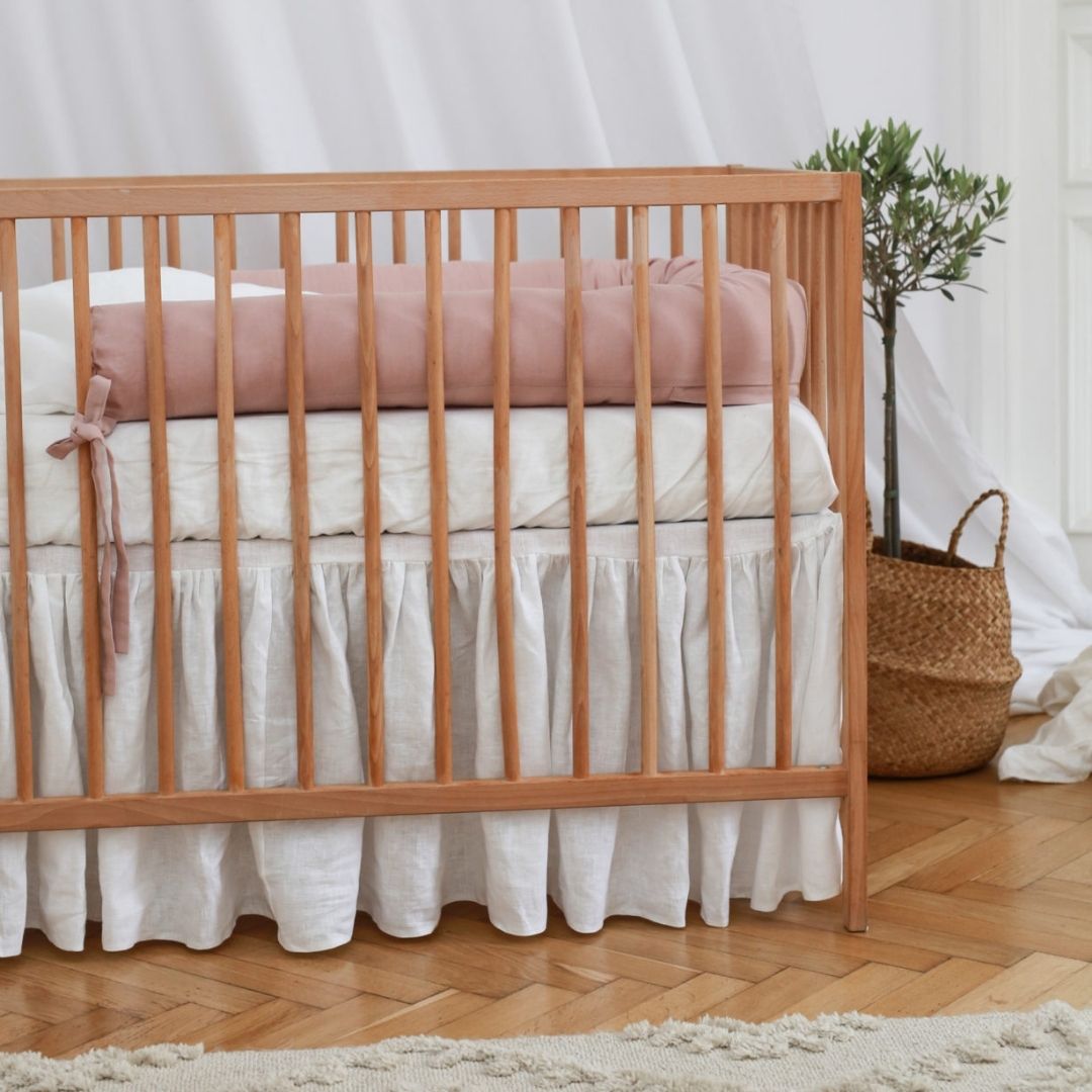 Ochraniacz wałek wykonany z miękkiego lnu będzie piękną ozdobą łóżeczka. Chroni przed bolesnym uderzeniem w główkę dzieci, które wędrują po łóżeczku w czasie zabawy lub drzemki.