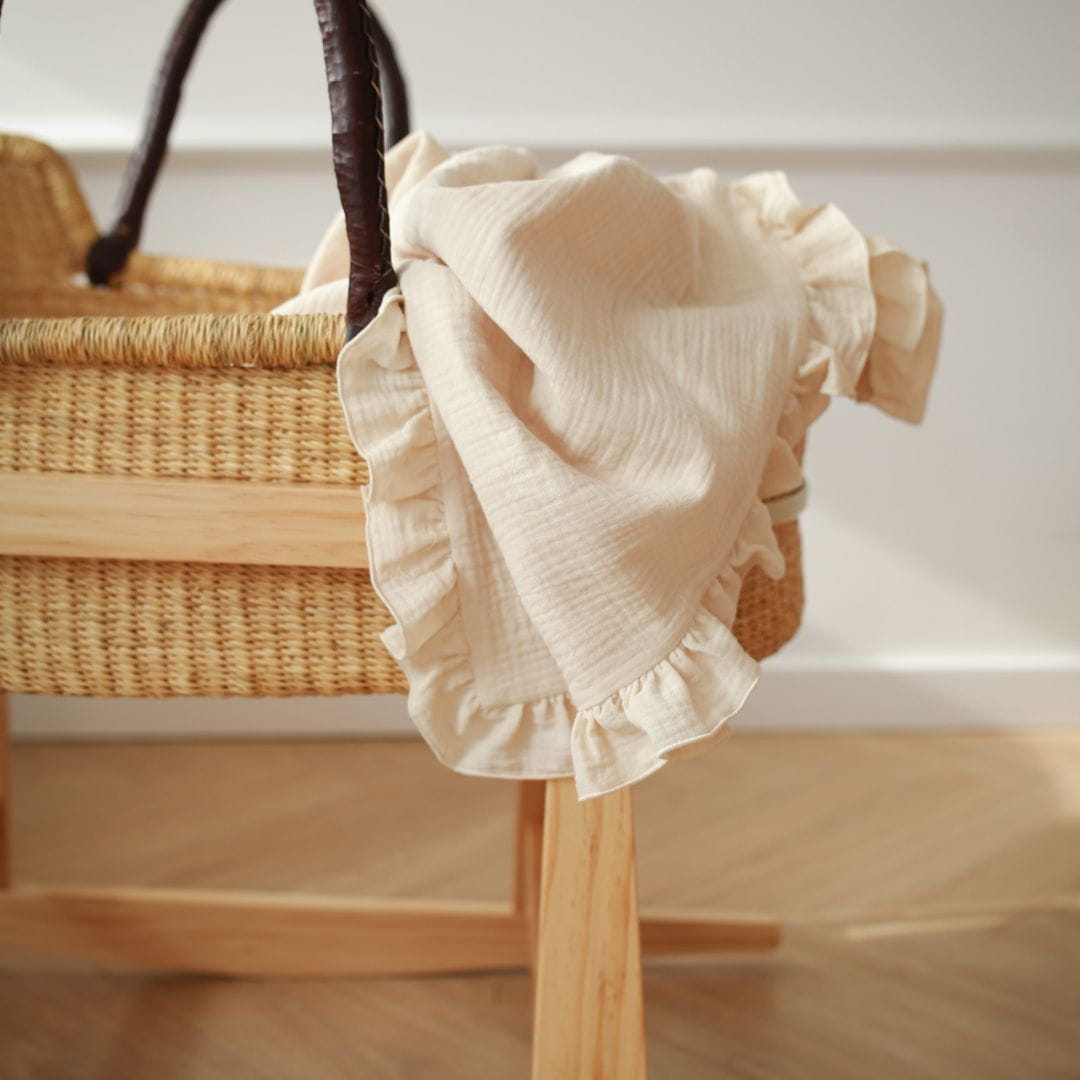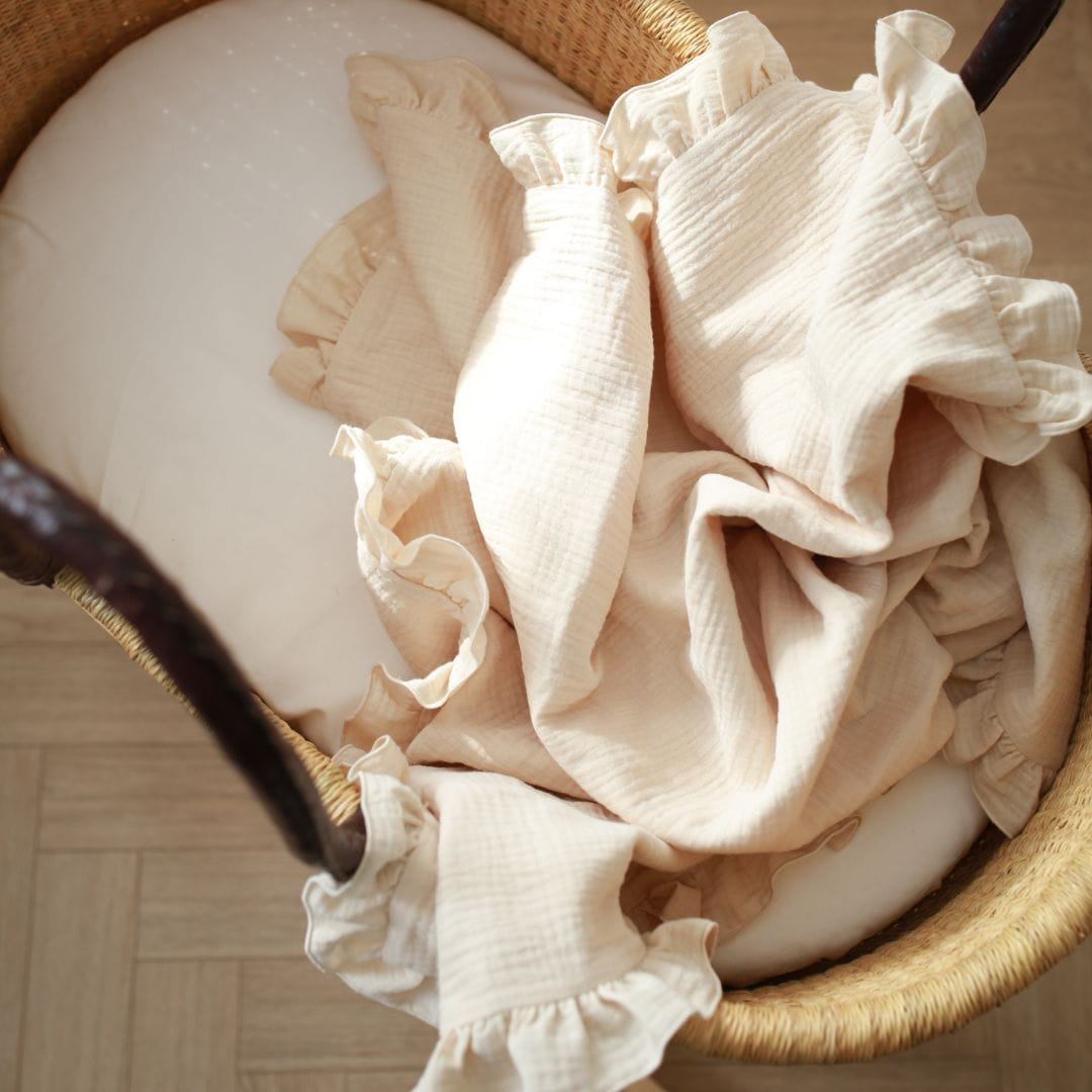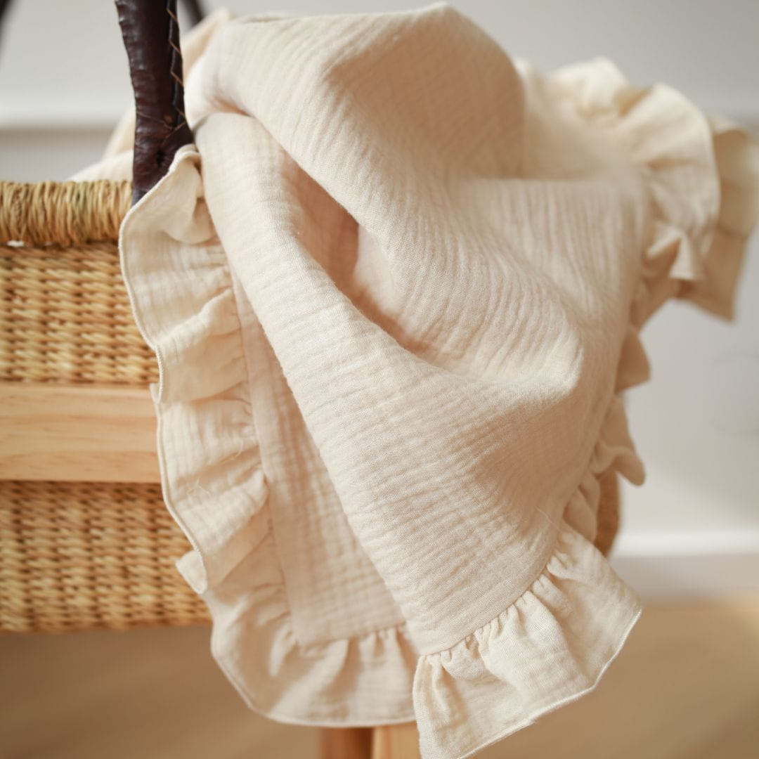 BABYLY - MUŚLINOWY KOCYK Z FALBANKĄ PIASKOWY