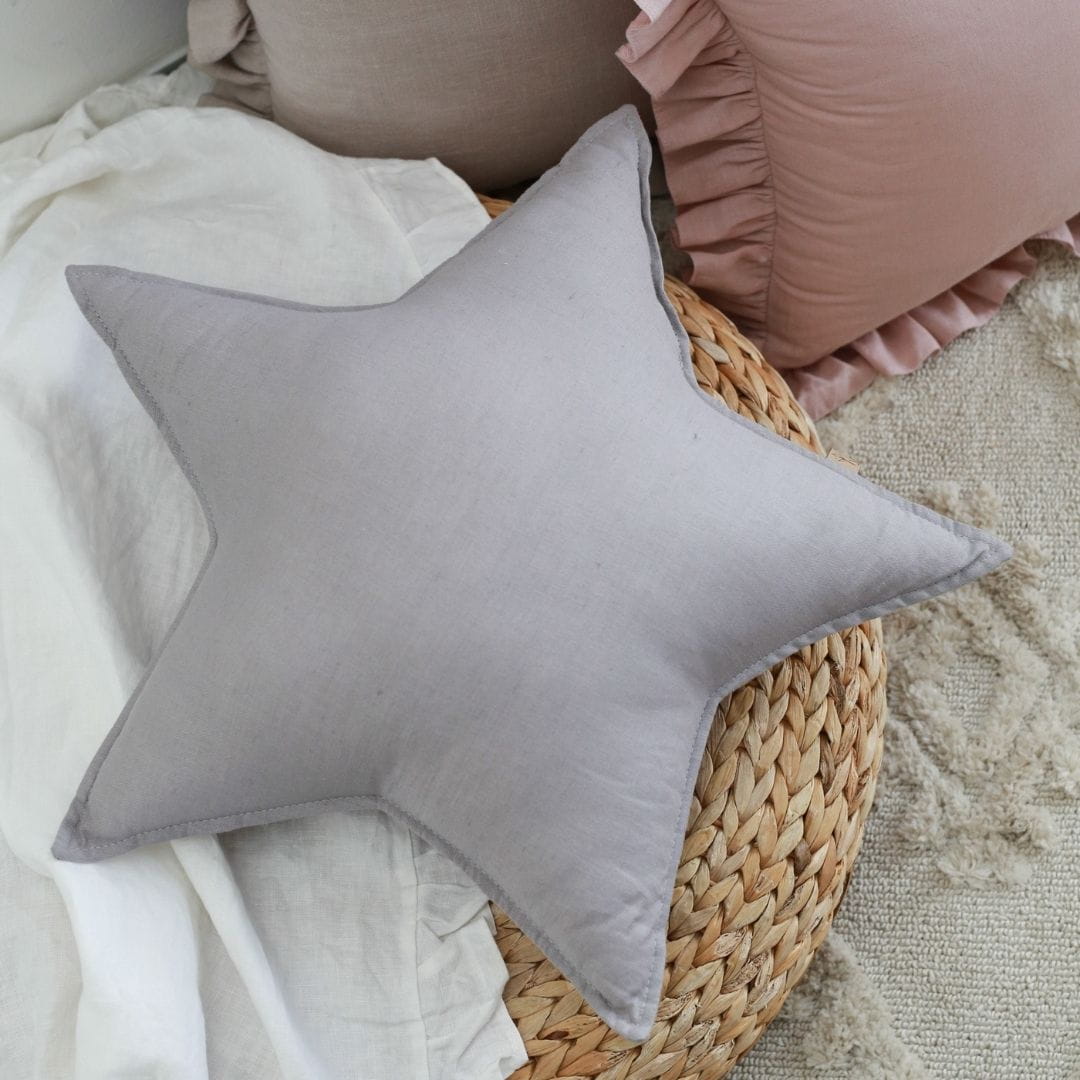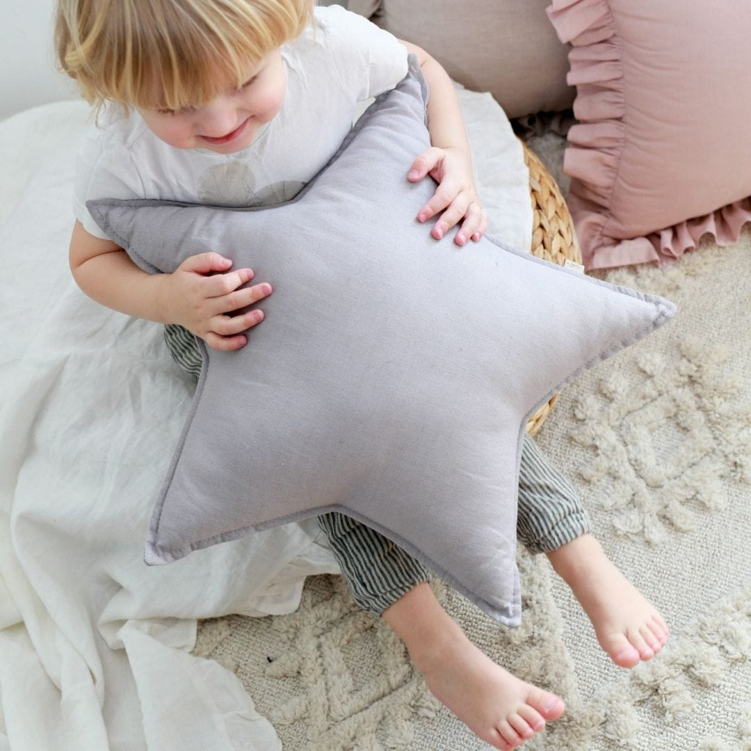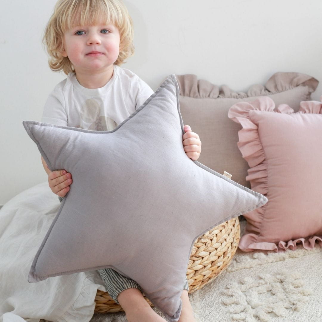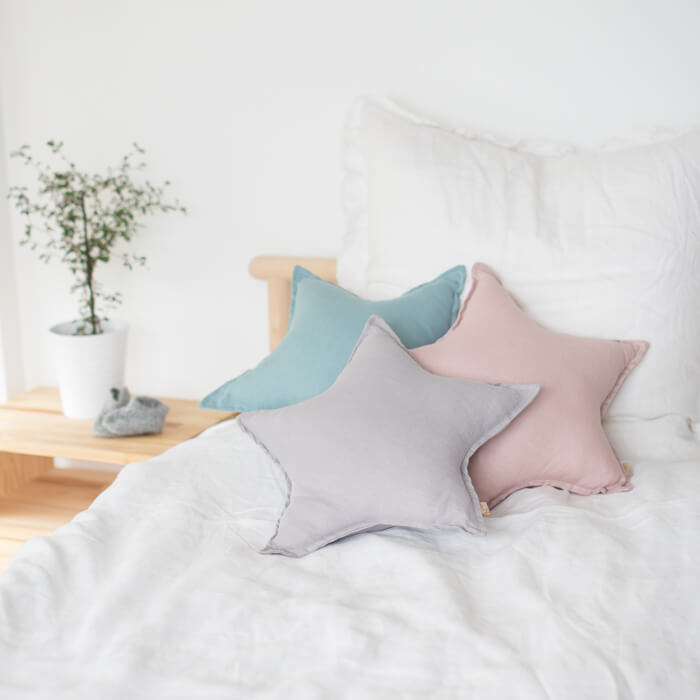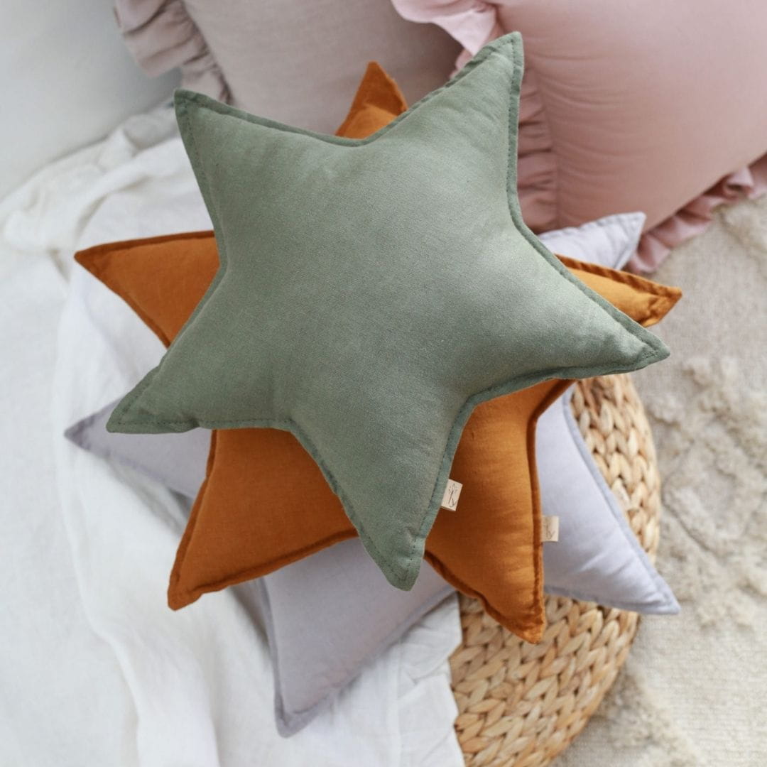 Poduszka do pokoju dziecka w kształcie gwiazdki ze zmiękczonego lnu będzie ciekawą ozdobą łóżeczka malucha jak i starszego dziecka. Dzięki zaokrąglonym rogom poduszki świetnie nadają się do bitwy na poduchy oraz do popołudniowej drzemki.