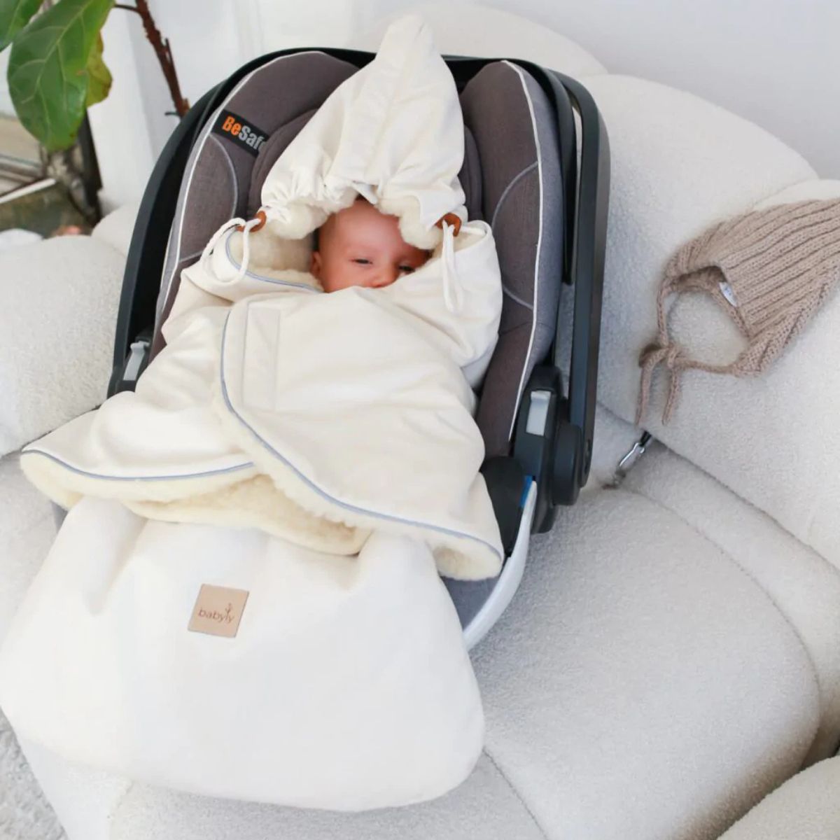 BABYLY - WEŁNIANY OTULACZ DO FOTELIKA ŚMIETANKOWY