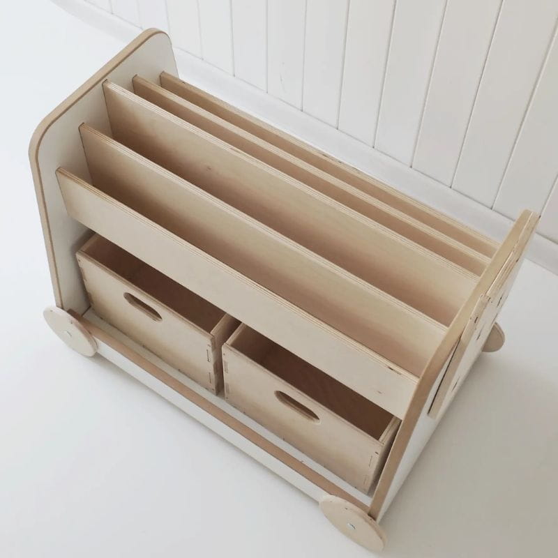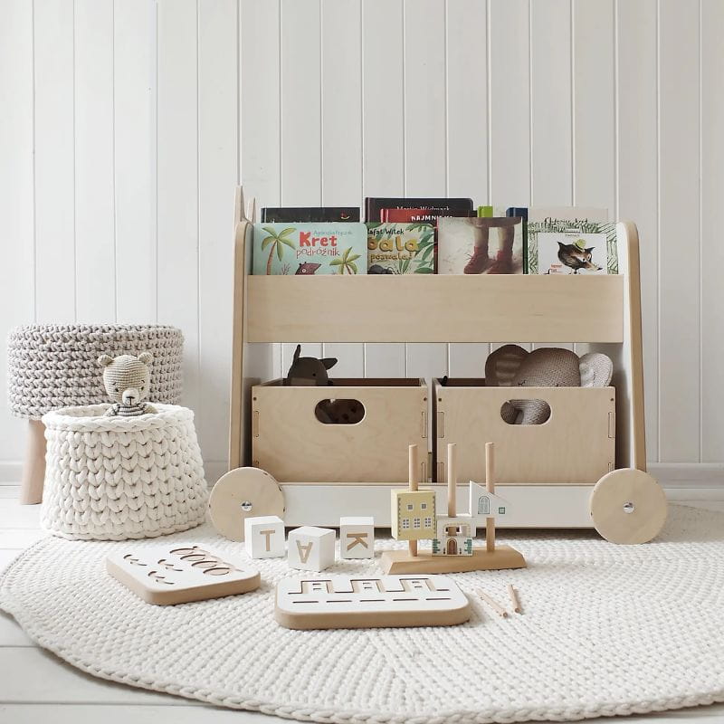 Drewniany regał na kółkach - mebelki Montessori