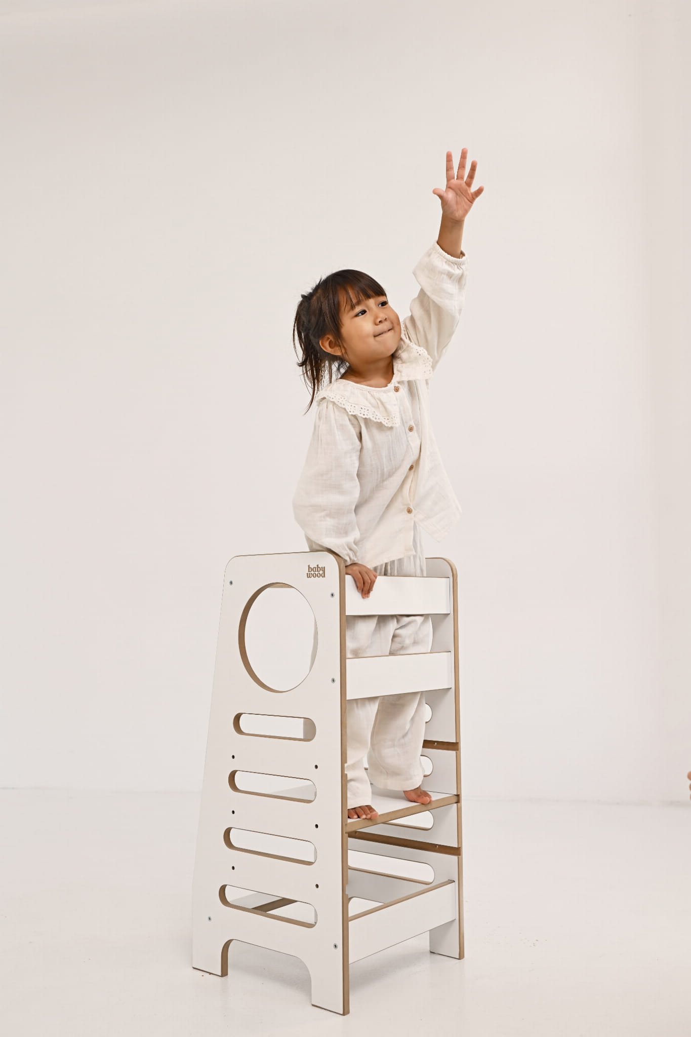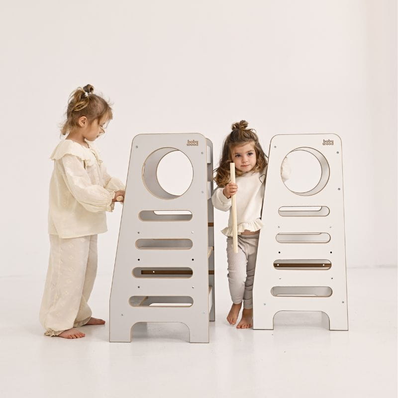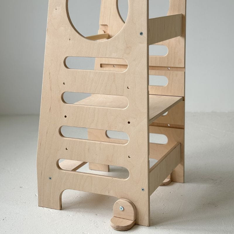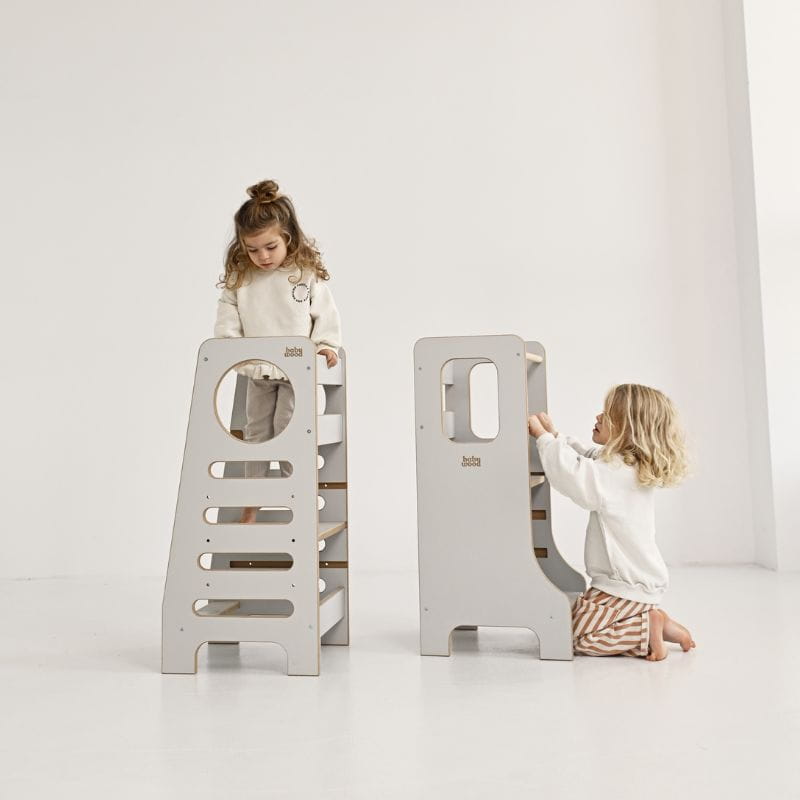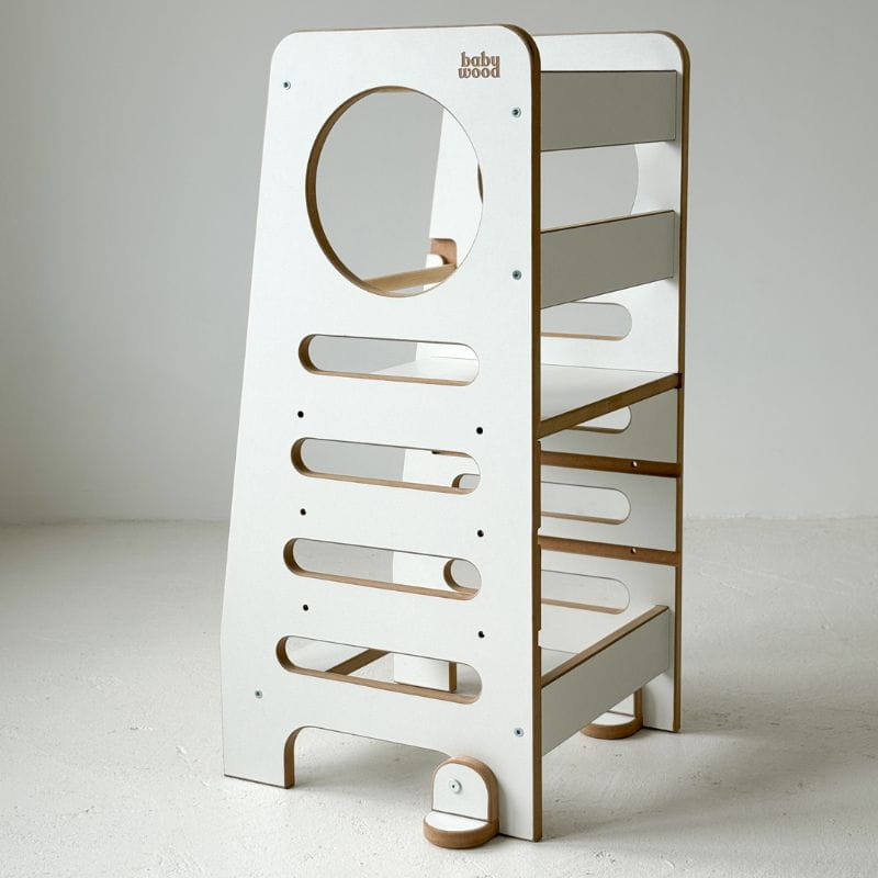 Kuchenny pomocnik Babywood został stworzony z myślą o zapewnieniu dzieciom bezpiecznej przestrzeni do zabawy, zgodnie z duchem filozofii Montessori. Wyposażony w liczne rozwiązania, znacząco podnosi poziom bezpieczeństwa. Zaokrąglone krawędzie oraz dodatkowy szczebelek uniemożliwiający zsuwanie się dziecka z podestu zapewniają bezpieczną i beztroską zabawę.