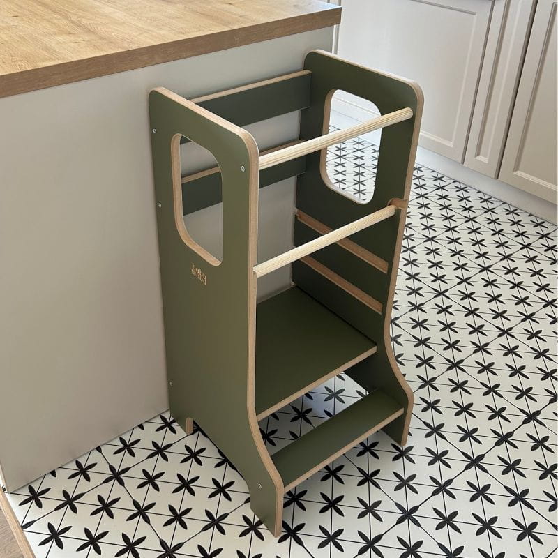 Kitchen helper to wyjątkowe połączenie podestu, podnóżka i kuchennego pomocnika, które umożliwia dzieciom udział w codziennych obowiązkach domowych. Teraz dziecko może samodzielnie kroić, mieszać i przygotowywać proste potrawy. W ten sposób wzmacnia swoje poczucie wartości, rozwija samodzielność, pewność siebie oraz doskonali koordynację ruchową.