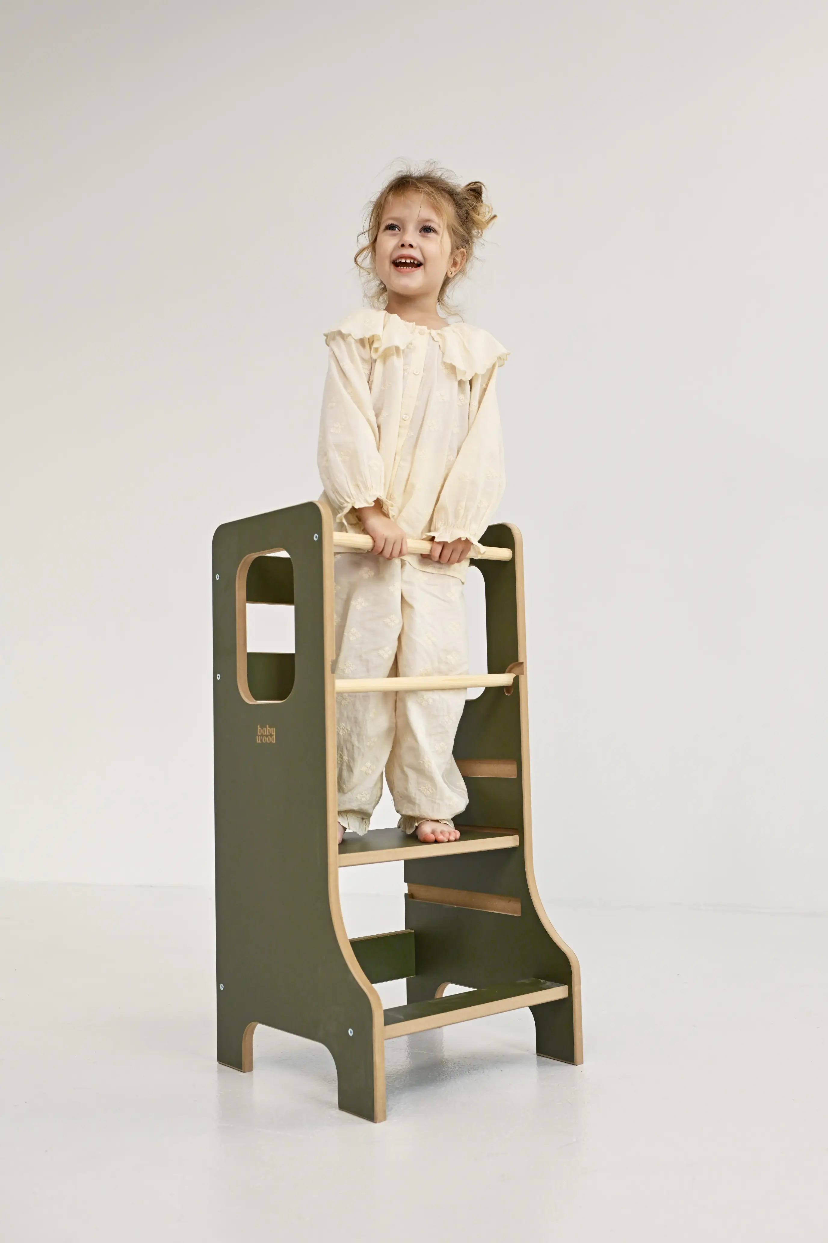 Pomocnik kuchenny Babywood został stworzony z myślą o zapewnieniu dzieciom bezpiecznej przestrzeni do zabawy, zgodnie z duchem filozofii Montessori.