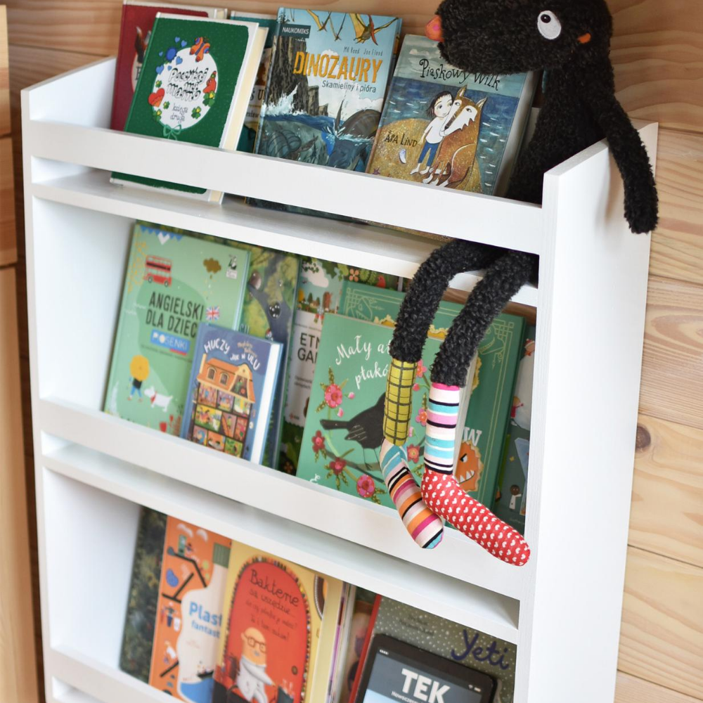 Nasza mega pojemna biblioteczka na książki dla dzieci to must have w pokoju każdego małego miłośnika literatury. Dzięki swojej konstrukcji pomieści naprawdę ogromną ilość książek – zarówno tych małych, jak i dużych formatów. To idealne rozwiązanie dla rodzin, które gromadzą bogate kolekcje bajek, opowiadań i atlasów dla dzieci.