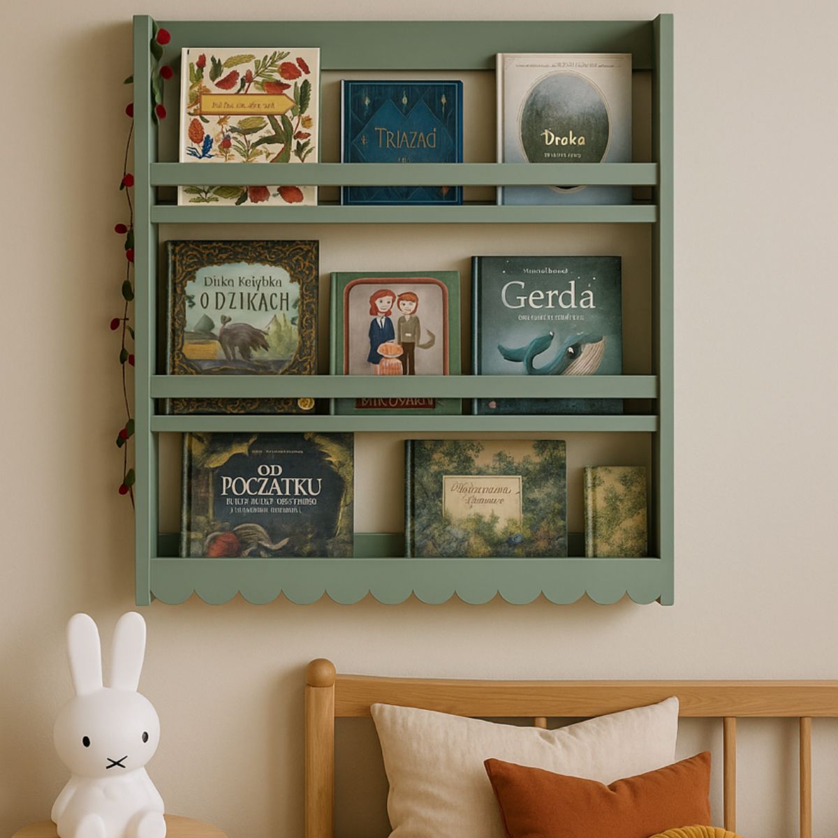 Półka na książeczki to idealne dopełnienie naturalnych i spokojnych wnętrz, w których króluje ciepło, bliskość i magia codziennych opowieści.