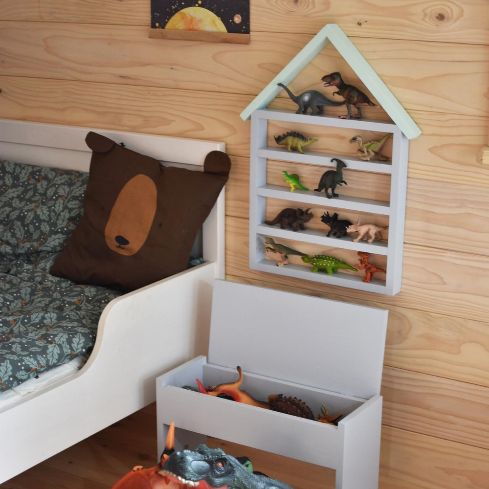 Dodatkowo półkę można indywidualnie dopasować do wnętrza dzięki szerokiej gamie kolorystycznej – od stonowanych, klasycznych barw po intensywne, dziecięce kolory, które wniosą radość i energię do pokoju. To nie tylko praktyczny mebel, ale też atrakcyjny element dekoracyjny, który pomaga w organizacji przestrzeni i rozbudza wyobraźnię malucha.
