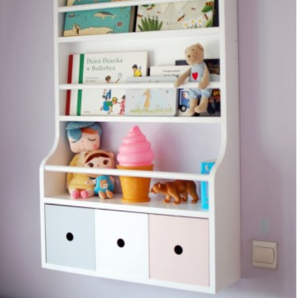 Pojemna biblioteczka do pokoju dziecka z praktycznymi skrzyneczkami