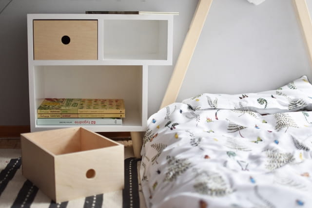 Szafka nocna Bambooko to praktyczny, estetyczny i bezpieczny mebel, który wprowadza porządek, pomaga dziecku w organizacji przestrzeni i dodaje przytulnego, przyjaznego klimatu w pokoju malucha.