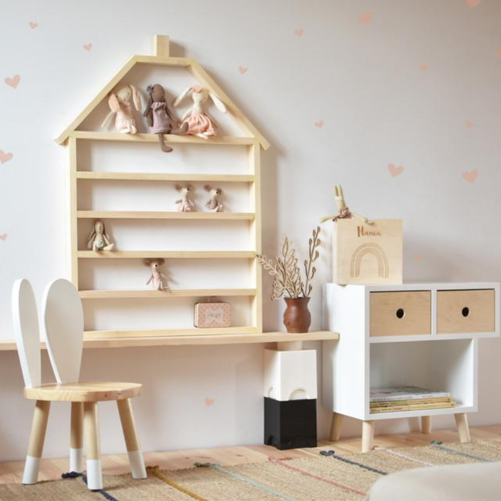Szafka wyposażona jest w dwie praktyczne skrzyneczki-szufladki, w których maluch może przechowywać swoje skarby, zabawki czy drobne akcesoria. Każdą skrzyneczkę możesz pomalować na wybrany kolor, co pozwala idealnie dopasować szafkę do wnętrza pokoju dziecka oraz jego indywidualnego stylu – od stonowanych, naturalnych barw po żywe, energetyczne kolory.
