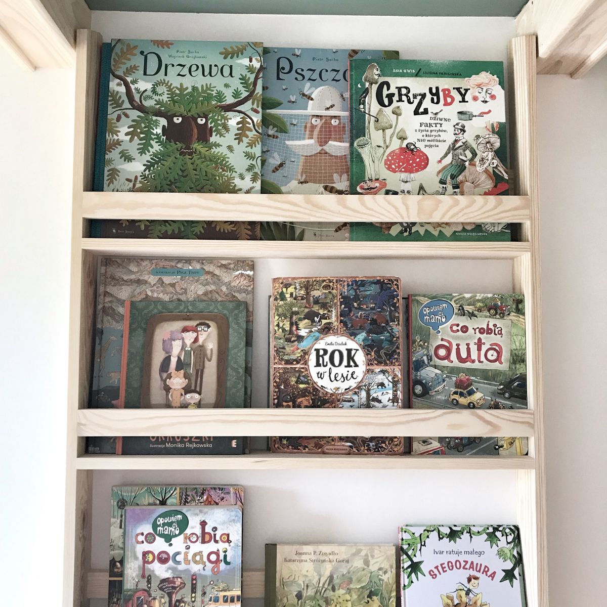 Dzięki montażowi jednej półki nad drugą otrzymujesz spójną i funkcjonalną przestrzeń, w której wszystkie książki są widoczne i łatwo dostępne. Każda półeczka powstaje ręcznie z naturalnego drewna sosnowego i jest zabezpieczona bezpiecznym, wodnym lakierem spełniającym normę EN 71. Prosta, minimalistyczna forma sprawia, że półki świetnie komponują się z każdą aranżacją — od skandynawskiej po klasyczną i nowoczesną.