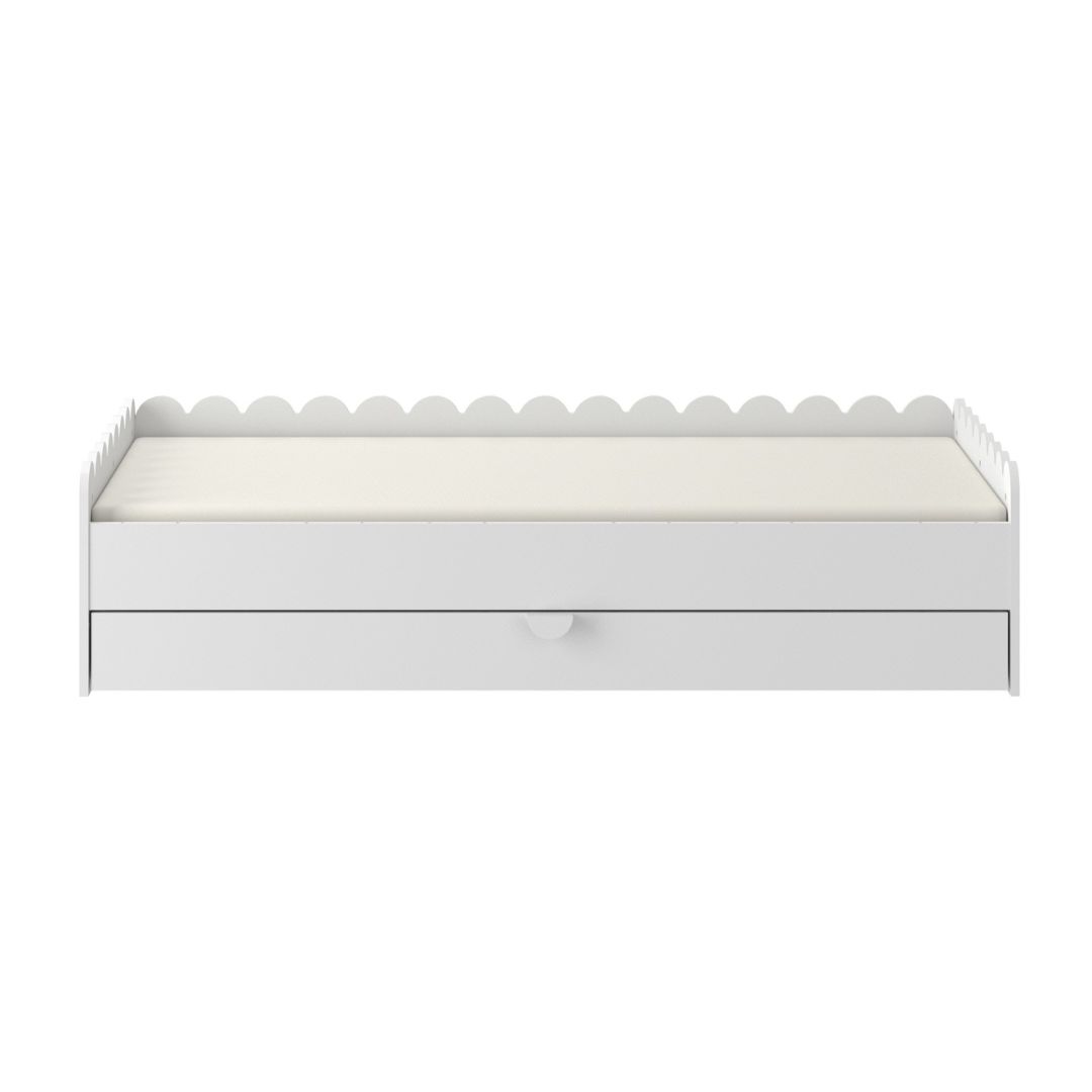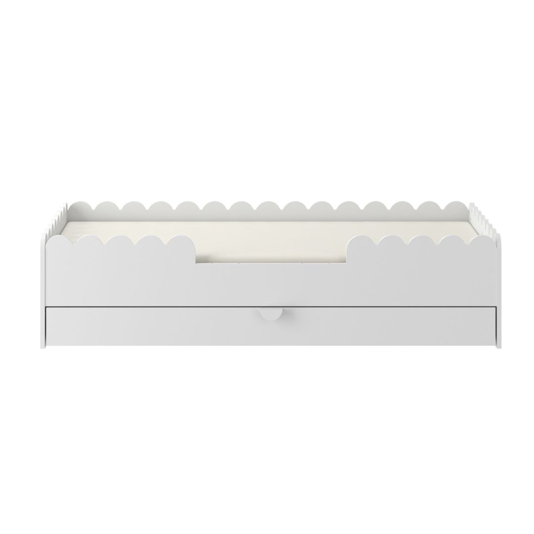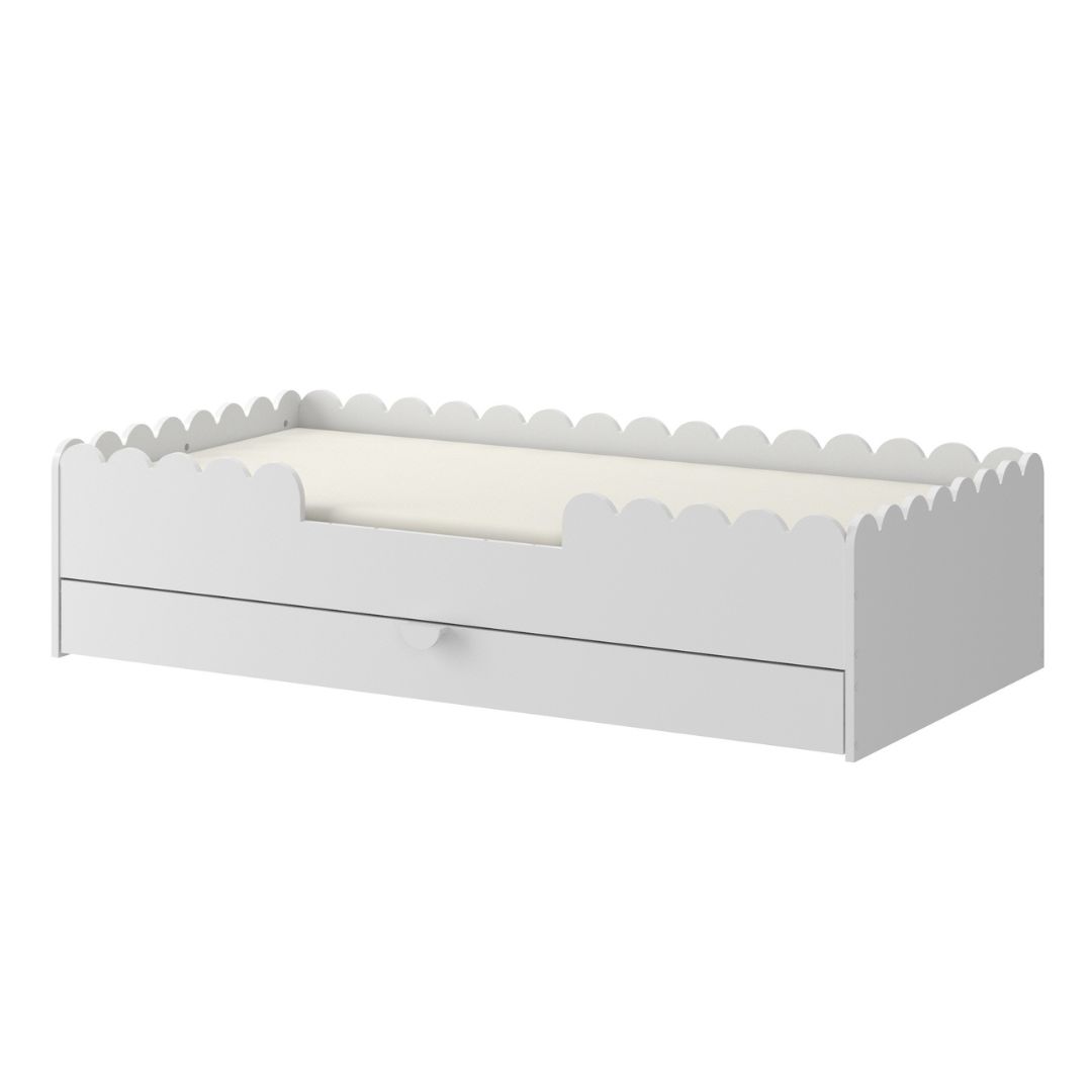 Łóżko dla dziecka z falbanką Book Nook wyposażone jest w pojemną szufladę na kółkach – idealną do przechowywania zabawek, pościeli czy akcesoriów codziennego użytku. To funkcjonalne rozwiązanie, które pomaga utrzymać porządek w pokoju i organizować przestrzeń. Jeśli więc szukasz łóżka z szufladą, Book Nook będzie idealnym wyborem.
