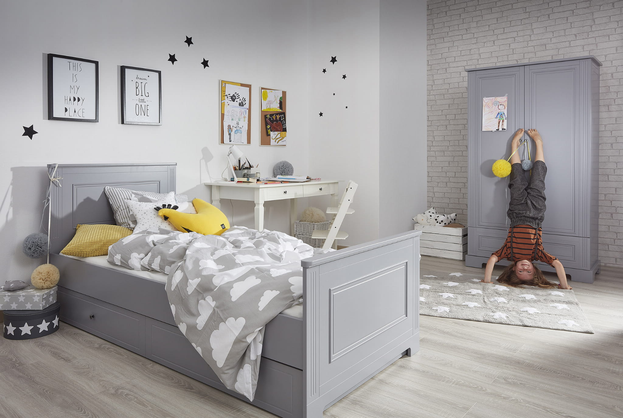 Kolekcja Ines Bellamy wychodzi naprzeciw oczekiwaniom najbardziej wymagających mam, dla których poza funkcjonalnością mebli dziecięcych, równie ważny jest ich design. Kolekcja została przygotowana w dwóch najbardziej klasycznych kolorach: eleganckiej bieli i uniwersalnej szarości. Wszelkie elementy zdobnicze (porcelanowe uchwyty, stylowe frezy), zostały tak zaprojektowane, żeby idealnie pasowały zarówno do pokoju Małej Damy, jak i Małego Dżentelmena.