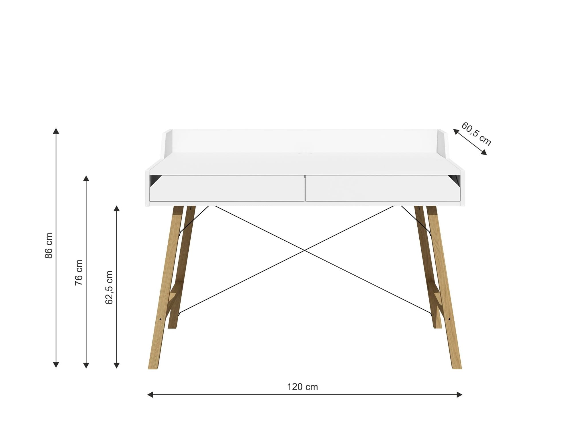 - wysokość biurka z ogranicznikiem: 86 cm