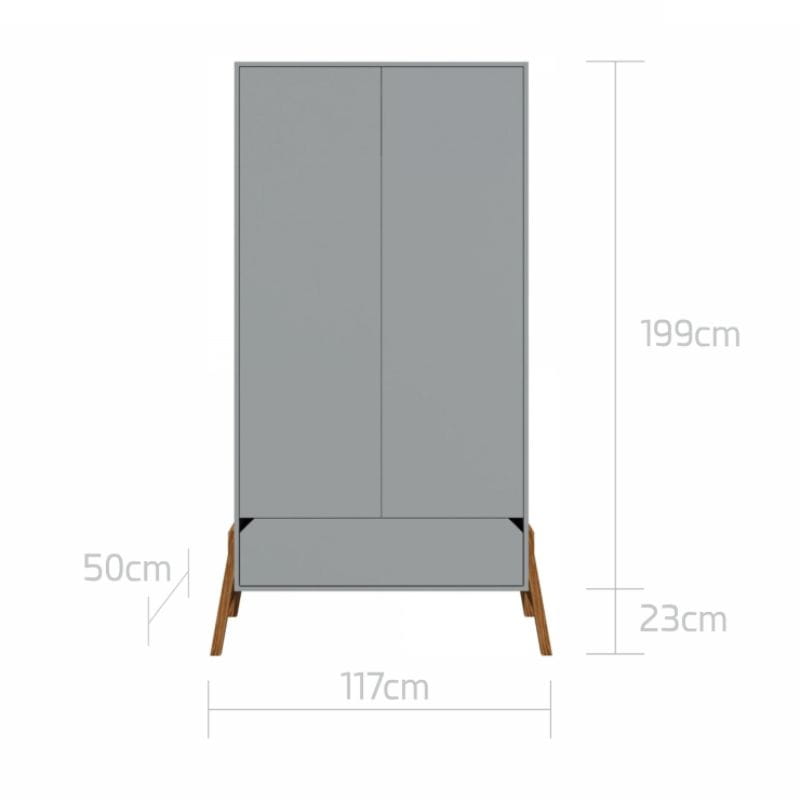 Jej prosta, minimalistyczna bryła osadzona na eleganckich, dębowych nogach nadaje wnętrzu lekkości i naturalnego charakteru. Stonowany szary kolor sprawia, że szafa świetnie odnajdzie się zarówno w nowoczesnych, jak i klasycznych aranżacjach pokoju dziecka.