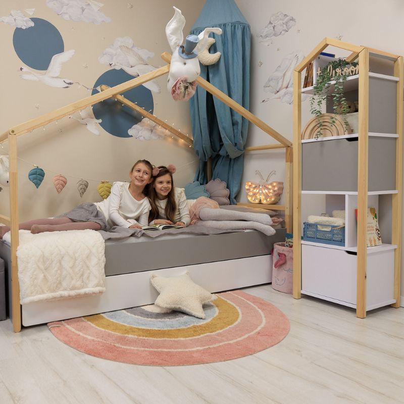Zastosowane rozwiązania pobudzają kreatywność dziecka, zachęcają do zabawy przy okazji ułatwiając organizację i porządkowanie zabawek. Regał Manhattan Bellamy w kształcie domku pozwoli dziecku angażować meble do wymyślonych przez siebie zabaw świetnie rozwijając jego wyobraźnię.