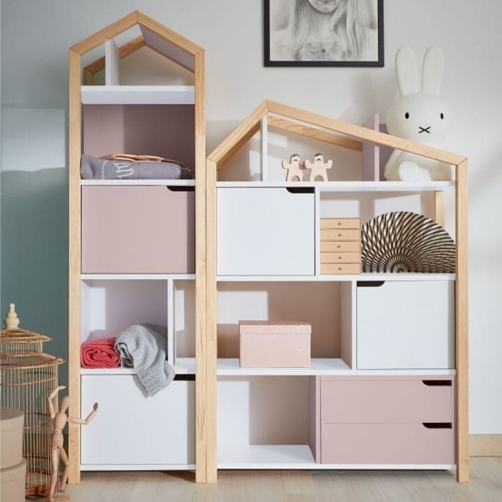 Regał Manhattan Bellamy w kształcie domku pozwoli dziecku angażować meble do wymyślonych przez siebie zabaw świetnie rozwijając jego wyobraźnię.