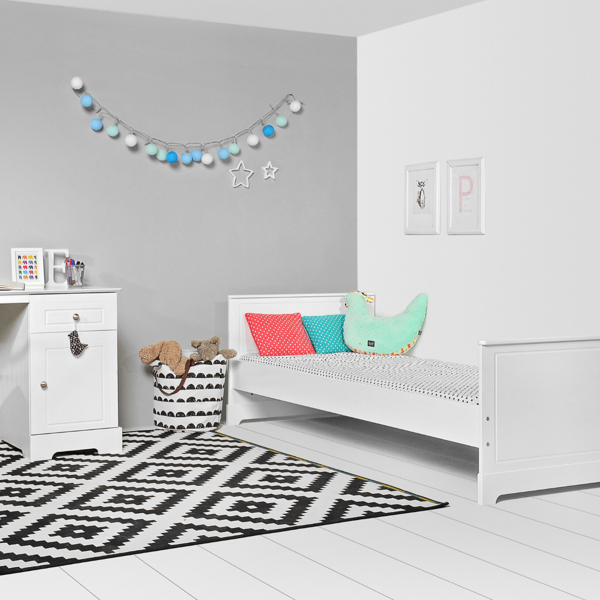 Łóżko można łatwo połączyć z innymi meblami z kolekcji Marylou, takimi jak komoda, szafa czy biurko. Dzięki temu stworzysz spójną, elegancką przestrzeń, która będzie nie tylko funkcjonalna, ale również estetyczna i dopasowana do potrzeb rosnącego dziecka.