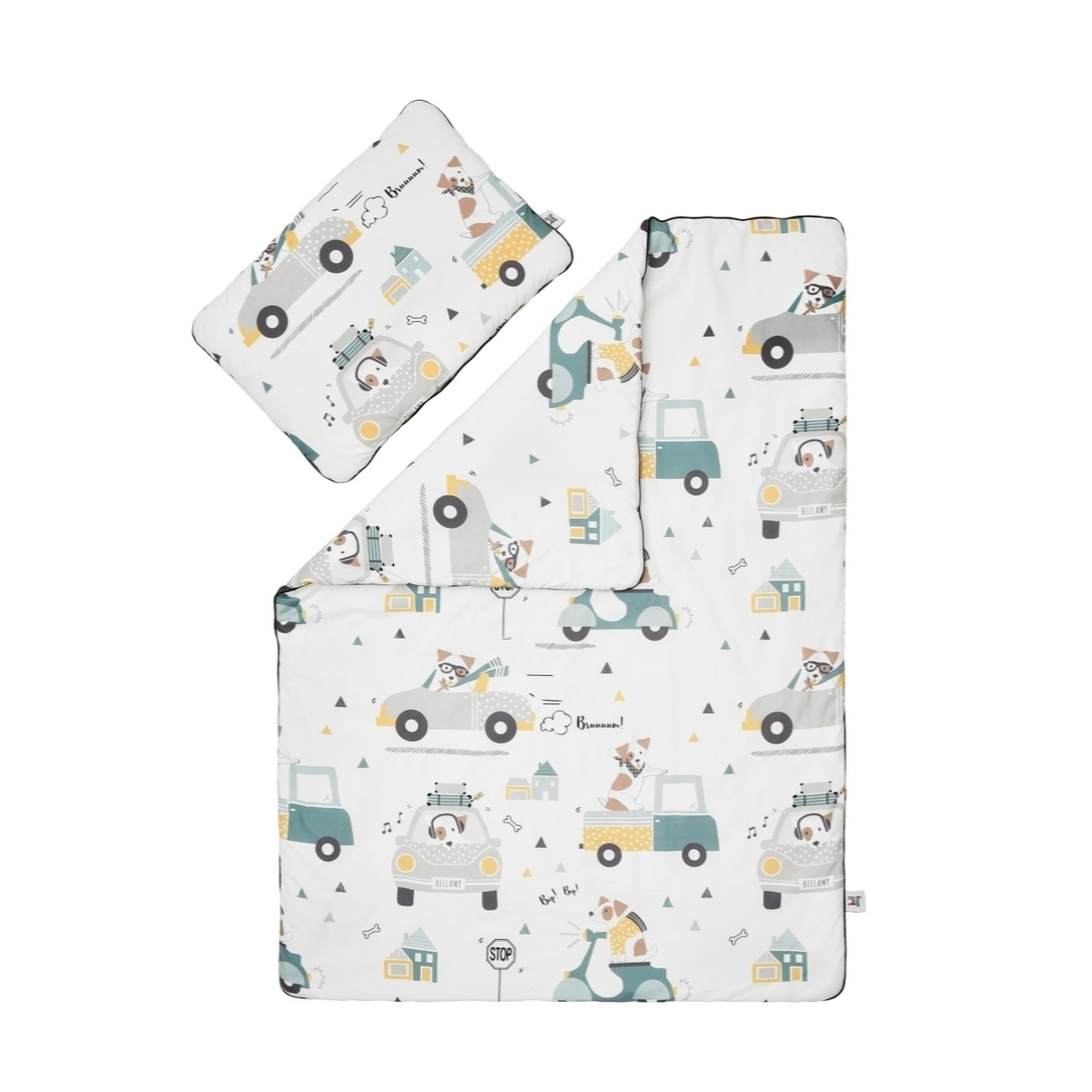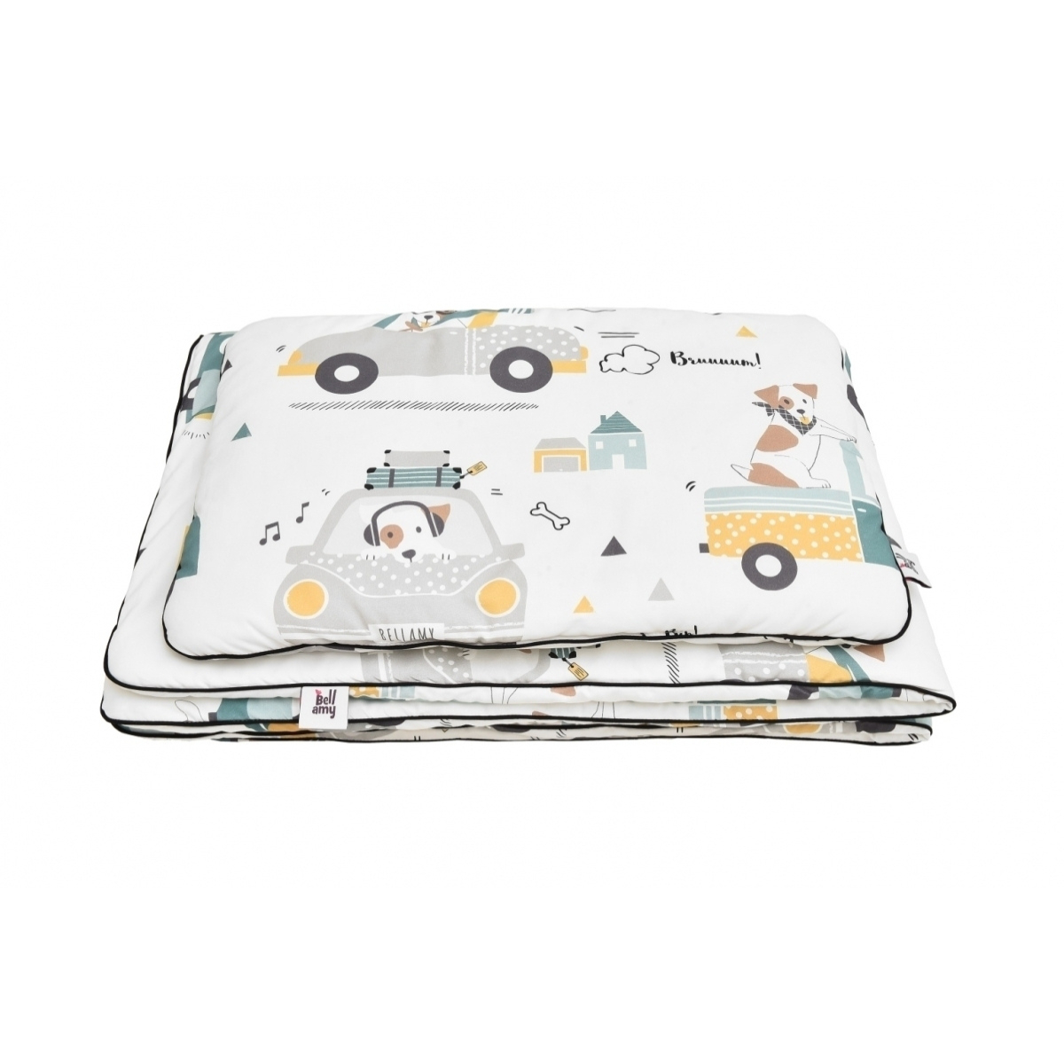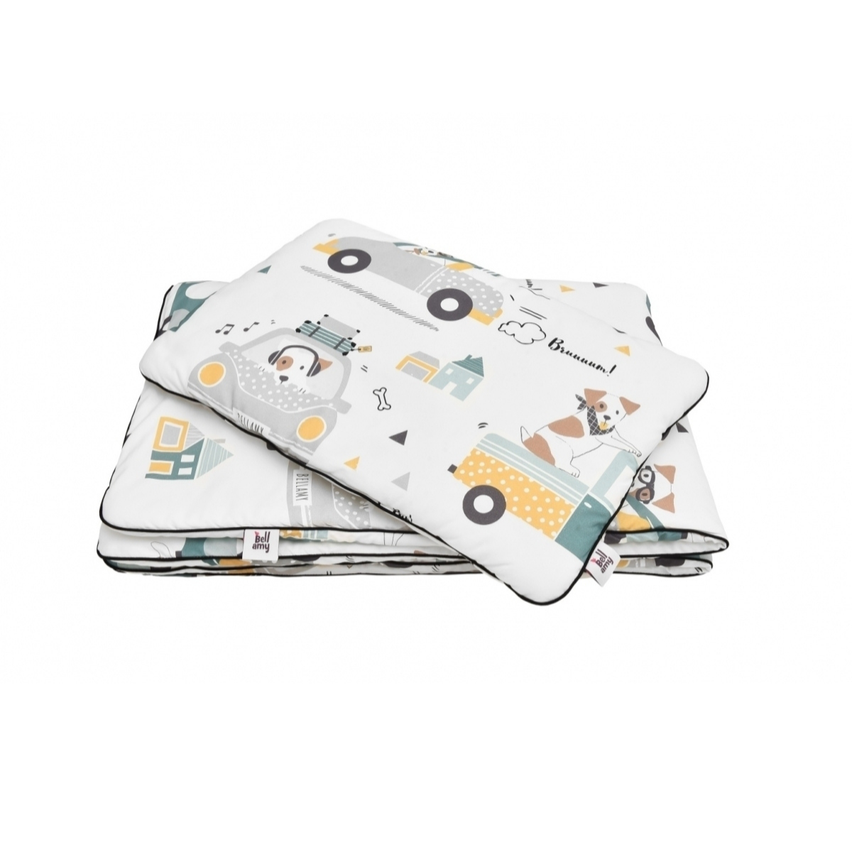 Poznajcie kolorowy świat wesołego pieska Jackie. Ten czworonożny zwierzaczek z pewnością skradnie serca Waszych dzieci i zapewni spokojne sny pełne wesołych przygód. Uroku całości dodaje czarna wypustka, którą obszyte są poduszka i kołderka.