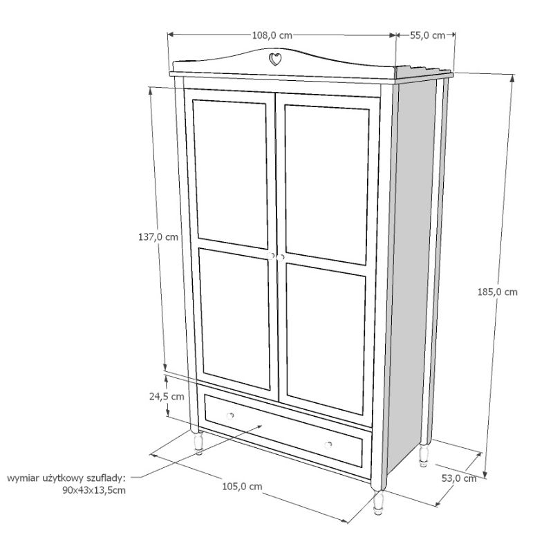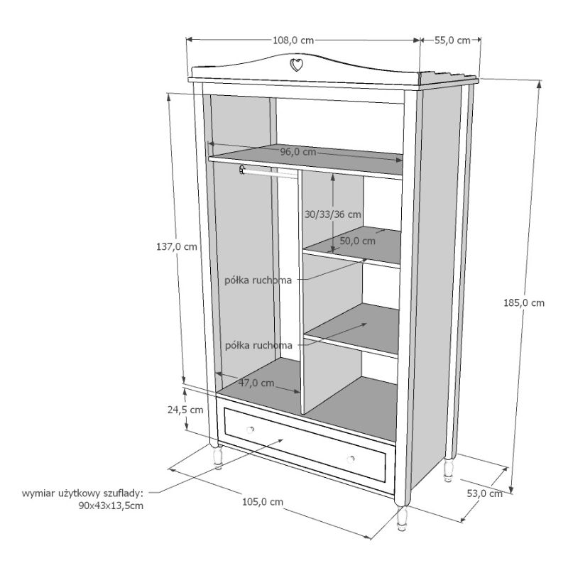 Wykończenie szafy dziecięcej z dekorem serduszka