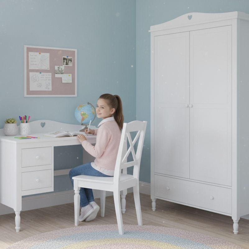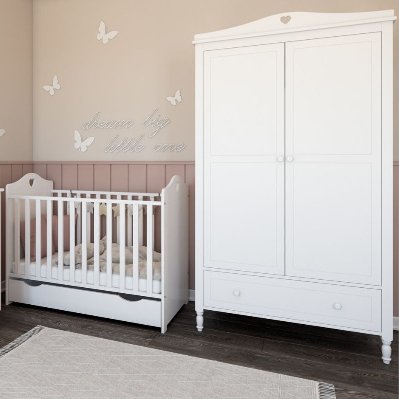 BIAŁA SZAFA DWUDRZWIOWA Z SERDUSZKIEM DO POKOJU DZIEWCZYNKI BELLA