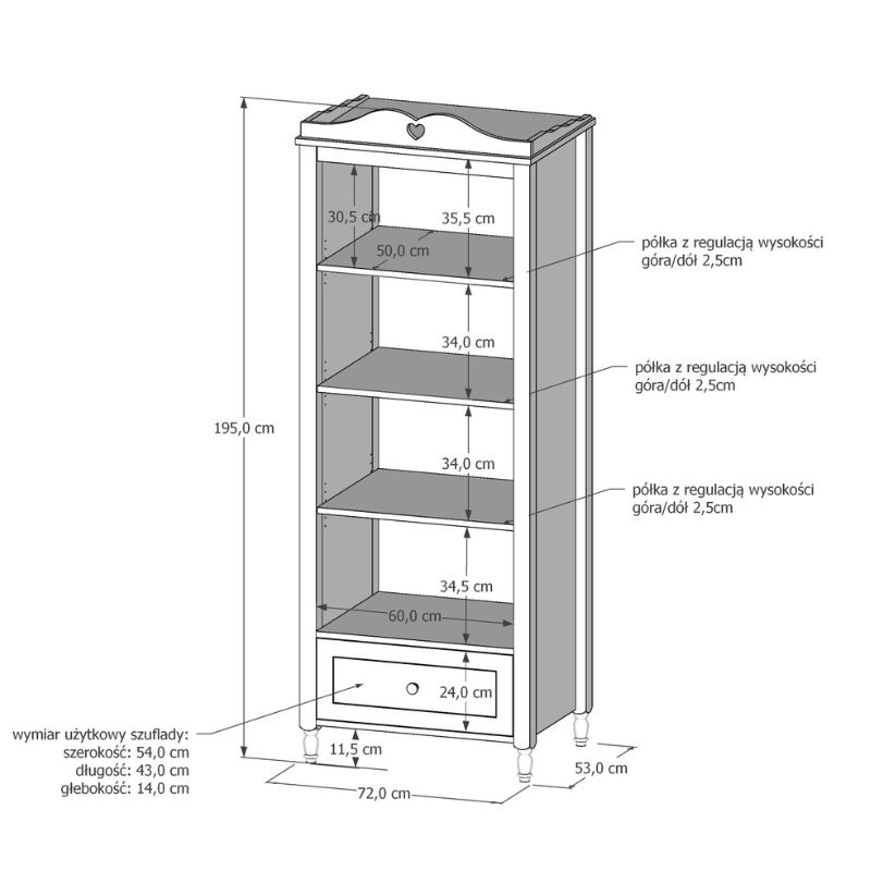 Regał do pokoju dziecka Bella – klasyka z motywem serca