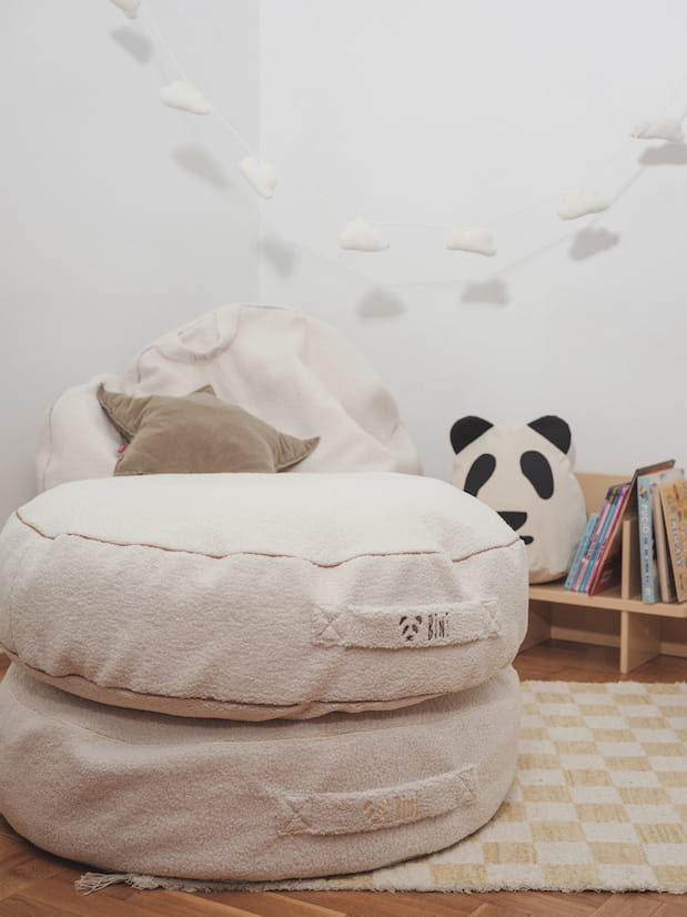 Pufy dla dzieci Bini są niezwykle łatwe w czyszczeniu - pufę Bini można prać w pralce (zalecamy 30 stopni), wystarczy zdjąć worek wewnętrzny i wrzucić pokrowiec do pralki.