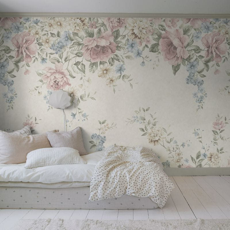 Urocza tapeta ścienna z motywem kwiatowym, idealnej do pokoju dziewczynki. Delikatne, naturalne piękno kwiatów to motyw, który świetnie sprawdzi się zarówno dla niemowlaka, jak i przedszkolaka czy starszego dziecka. Ten romantyczny mural z kwiatowym motywem przeniesie malucha do magicznego ogrodu pełnego kolorowych kwiatów, nadając wnętrzu subtelności i świeżości.