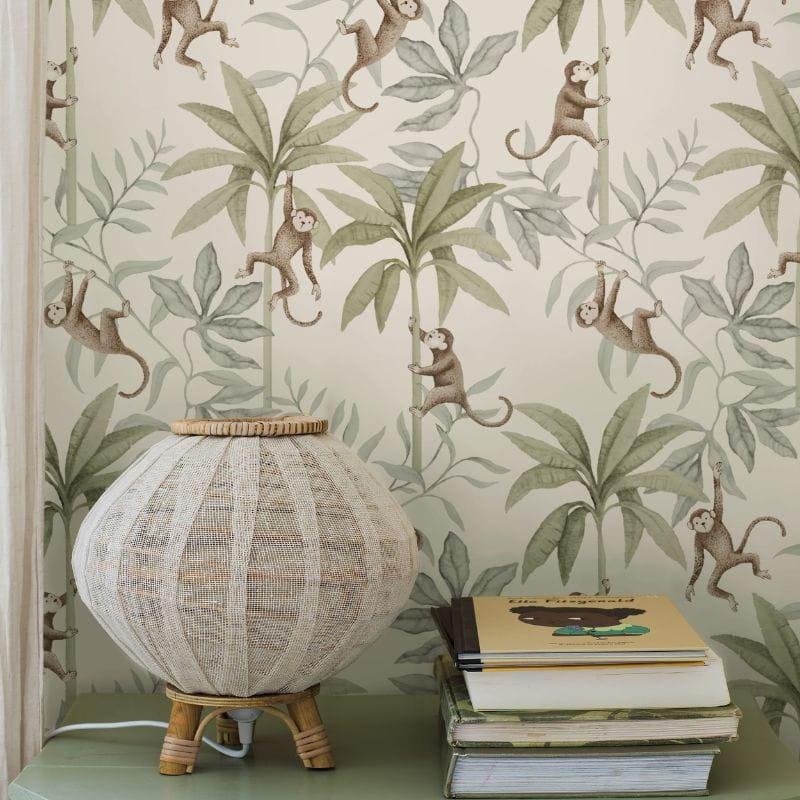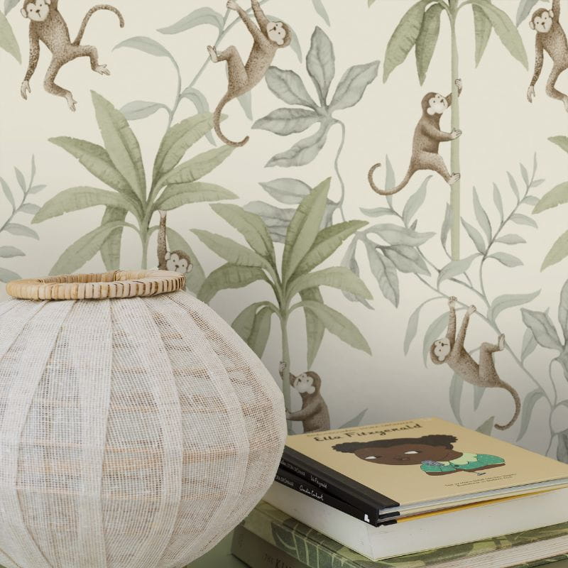 Tapeta dżungla to ilustracja dla miłośników dzikiej przyrody. Urocze małpki wśród bujnej tropikalnej roślinności pobudzą wyobraźnię i nadadzą wnętrzu wyjątkowego charakteru. Tapeta safari stworzy prawdziwą dżunglę w pokoju Twojego dziecka.