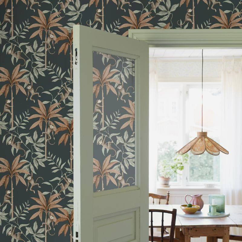 Tapeta dżungla to ilustracja dla miłośników dzikiej przyrody. Urocze małpki wśród bujnej tropikalnej roślinności pobudzą wyobraźnię i nadadzą wnętrzu wyjątkowego charakteru. Tapeta safari stworzy prawdziwą dżunglę w pokoju Twojego dziecka.