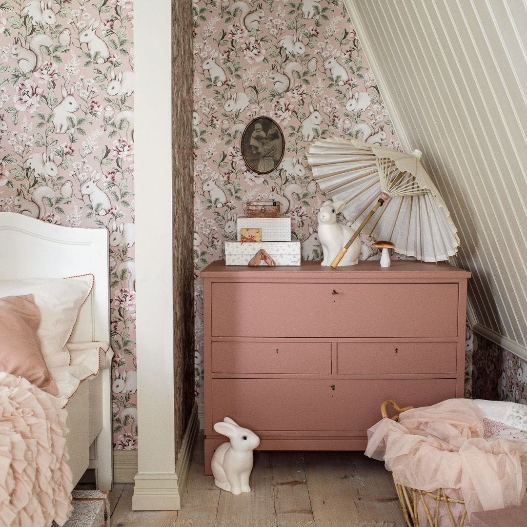 Ta cudna tapeta dla dziewczynki zaprojektowana przez szwedzką markę Newbie i wydrukowana przez firmę Borastapeter - jedną z najstarszych i najbardziej znanych marek produkujących tapety na ścianę.