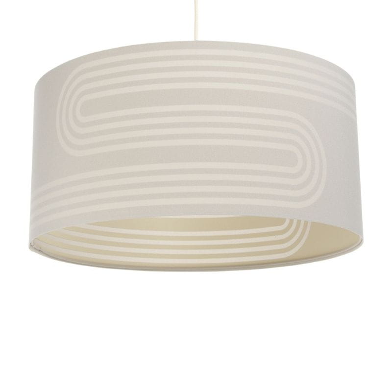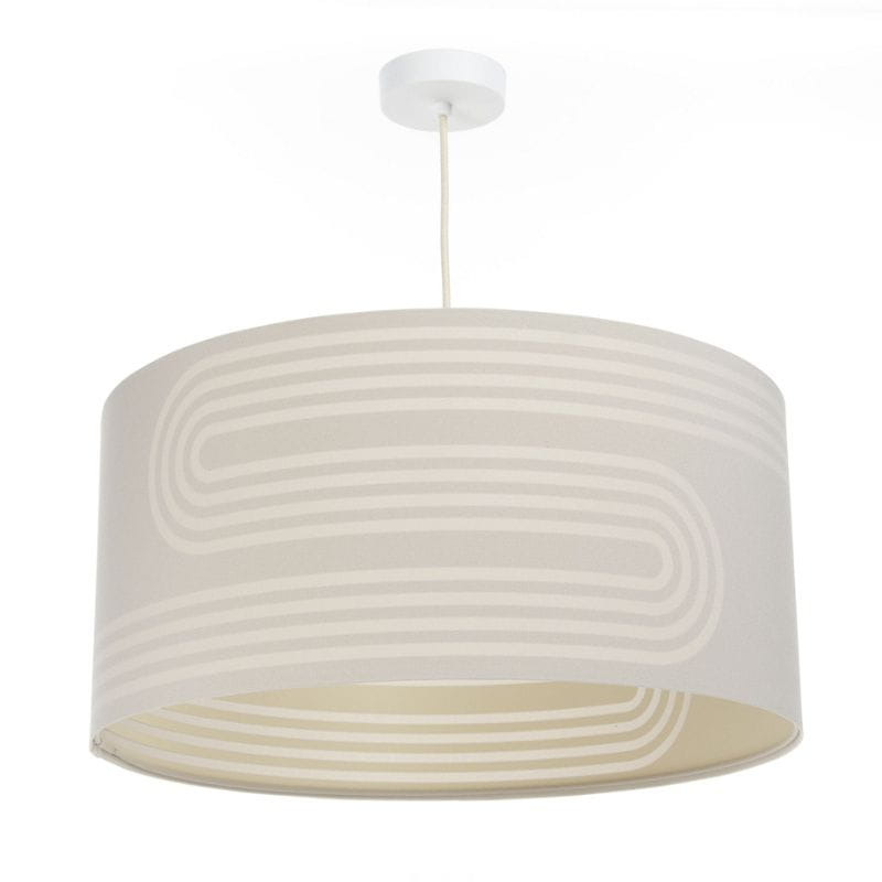 Abażur wykonany jest z tkaniny strukturalnej, na beżowym tworzywie PP.