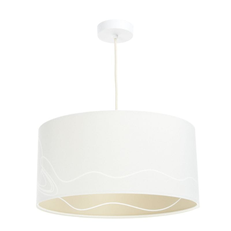 Abażur wykonany jest z tkaniny strukturalnej, na beżowym tworzywie PP.