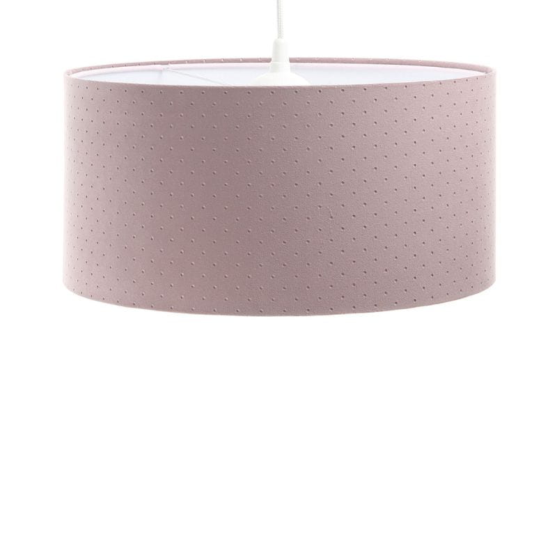 Abażur wykonany jest z pikowanej tkaniny jaśminowej w kolorze pudrowego różu na białym tworzywie PCV. Abażur jest odporny na działania promieni UV, dlatego tkanina nie ulega blaknięciu w trakcie użytkowania.