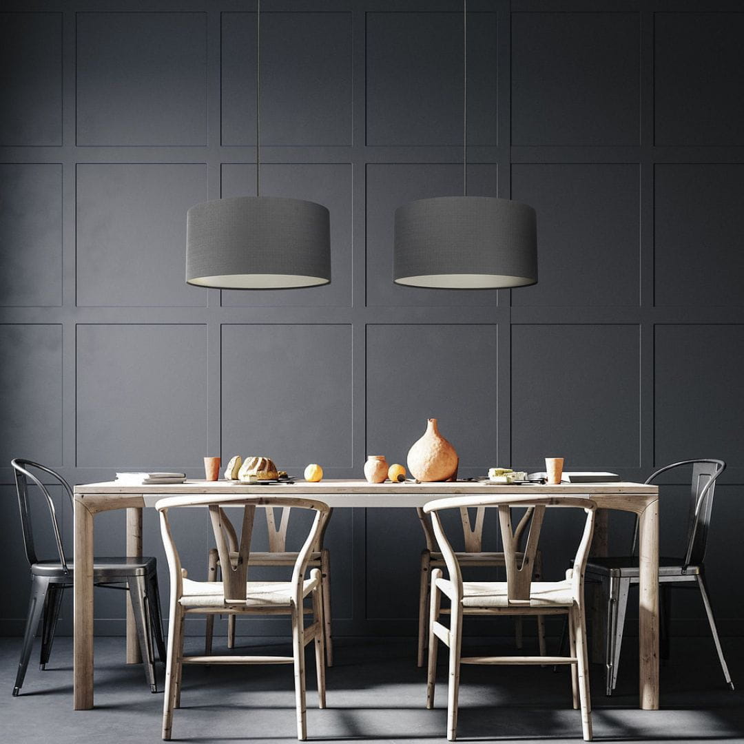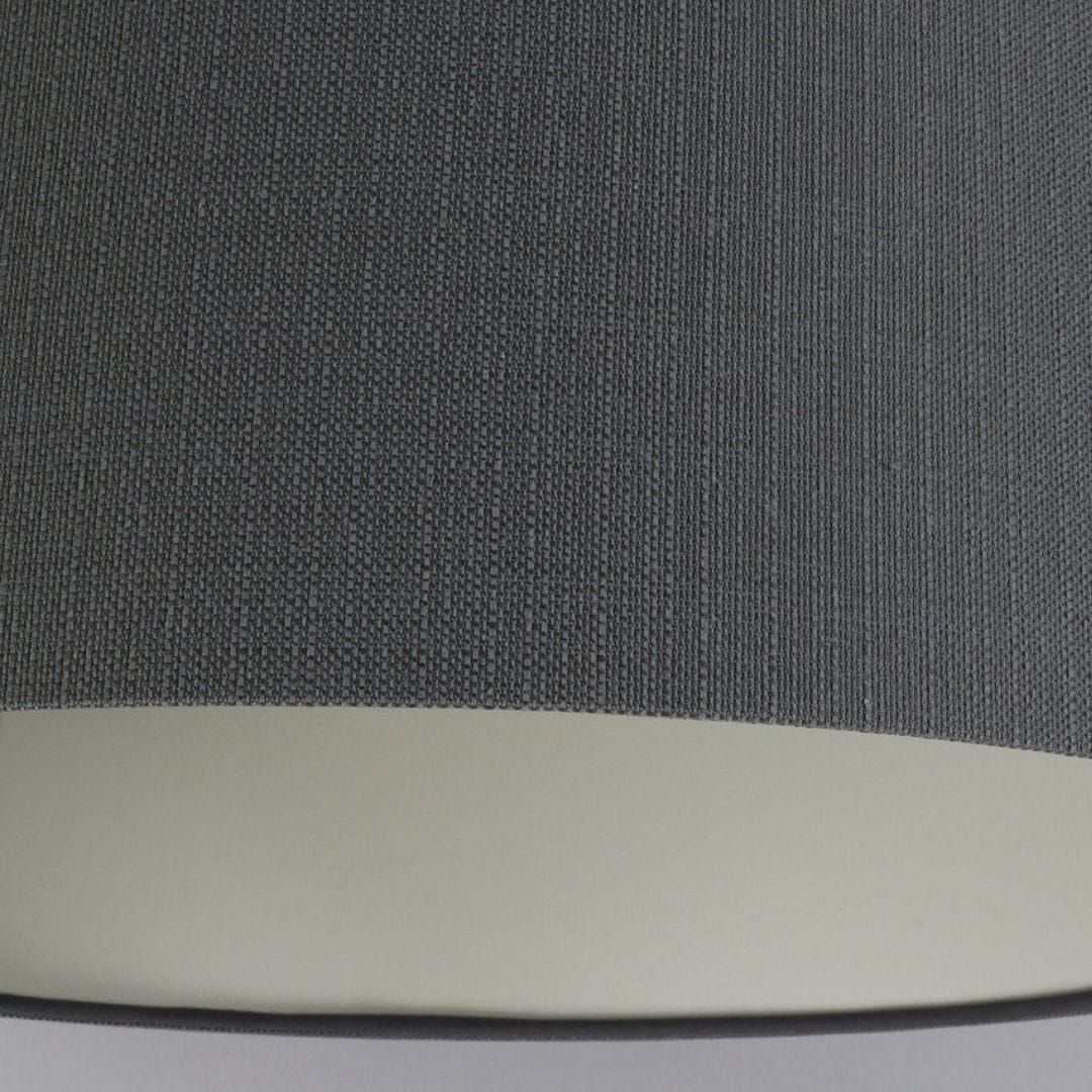 Abażur wykonany z grafitowej tkaniny lnianej, na kremowym PCV. Abażur jest odporny na działania promieni UV, dlatego tkanina nie ulega blaknięciu w trakcie użytkowania.