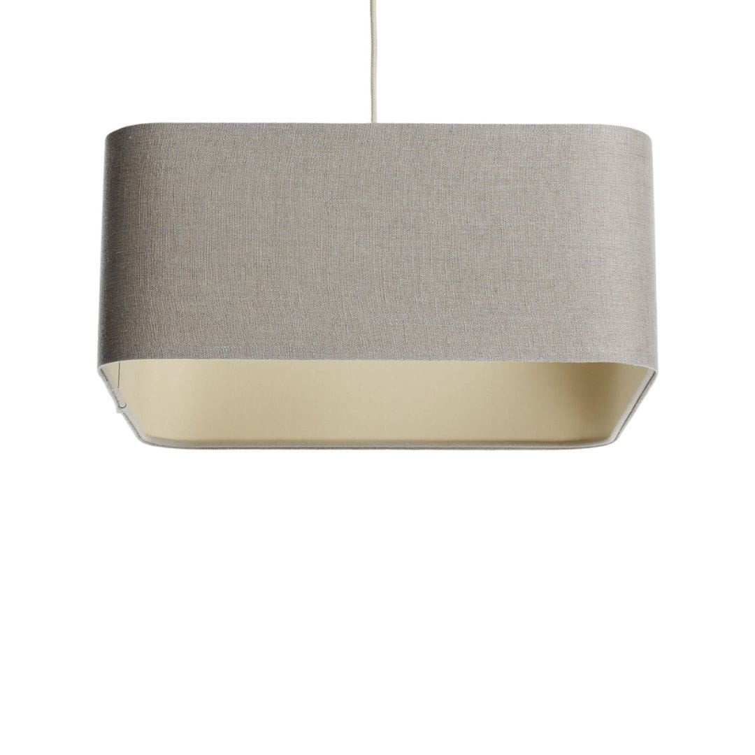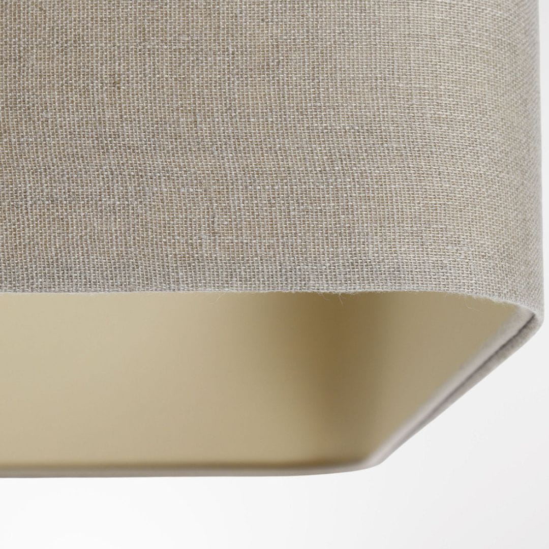 Abażur wykonany jest z tkaniny lnianej w kolorze beżowym, nałożonej na beżowym plastiku. Abażur jest odporny na działania promieni UV, dlatego tkanina nie ulega blaknięciu w trakcie użytkowania.