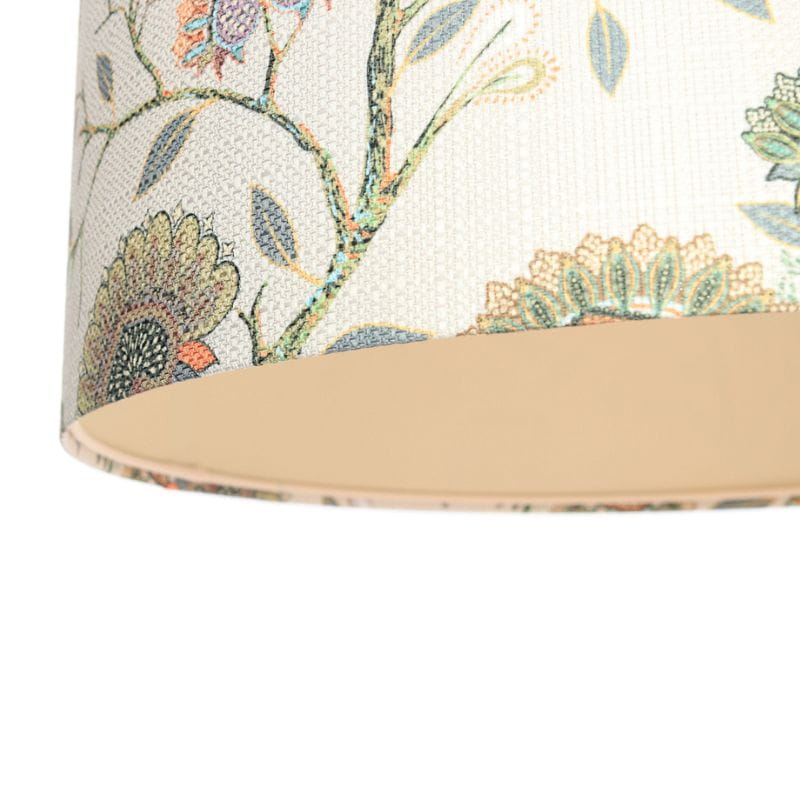 Lampa do pokoju dziewczynki wykonana jest z tkaniny strukturalnej z kolorowym nadrukiem nałożonej na plastiku PCV w kolorze kremowym.