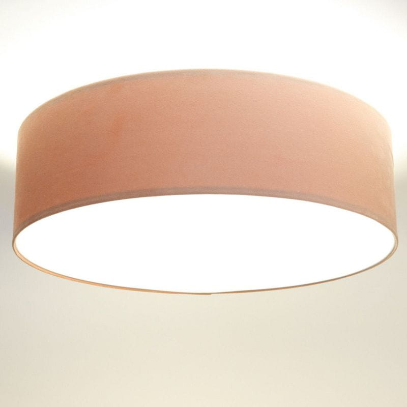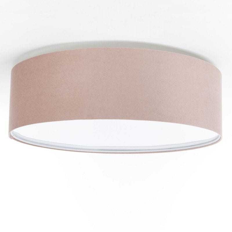 Abażur wykonany jest z tkaniny welurowej w kolorze różu na plastiku PCV z białym środkiem. Wewnętrzny abażur zabudowany jest blendą maskującą w kolorze opal białym. Abażur jest odporny na działania promieni UV, dlatego tkanina nie ulega blaknięciu w trakcie użytkowania.