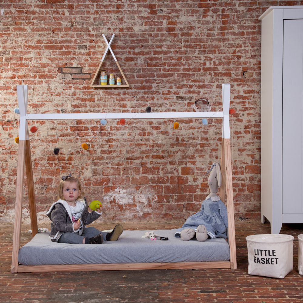 Spanie w łóżku w kształcie tipi to prawdziwa frajda! Niebanalny element wystroju dziecięcego wnętrza o oryginalnym kształcie litery A.