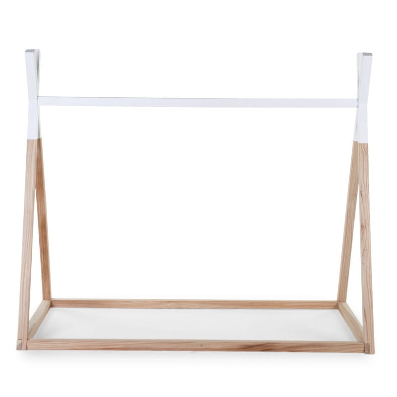 Łóżko dziecięce Tipi marki Childhome to łóżko w minimalistycznym stylu wykonane z drewna bukowego w naturalnym kolorze, z białymi elementami.