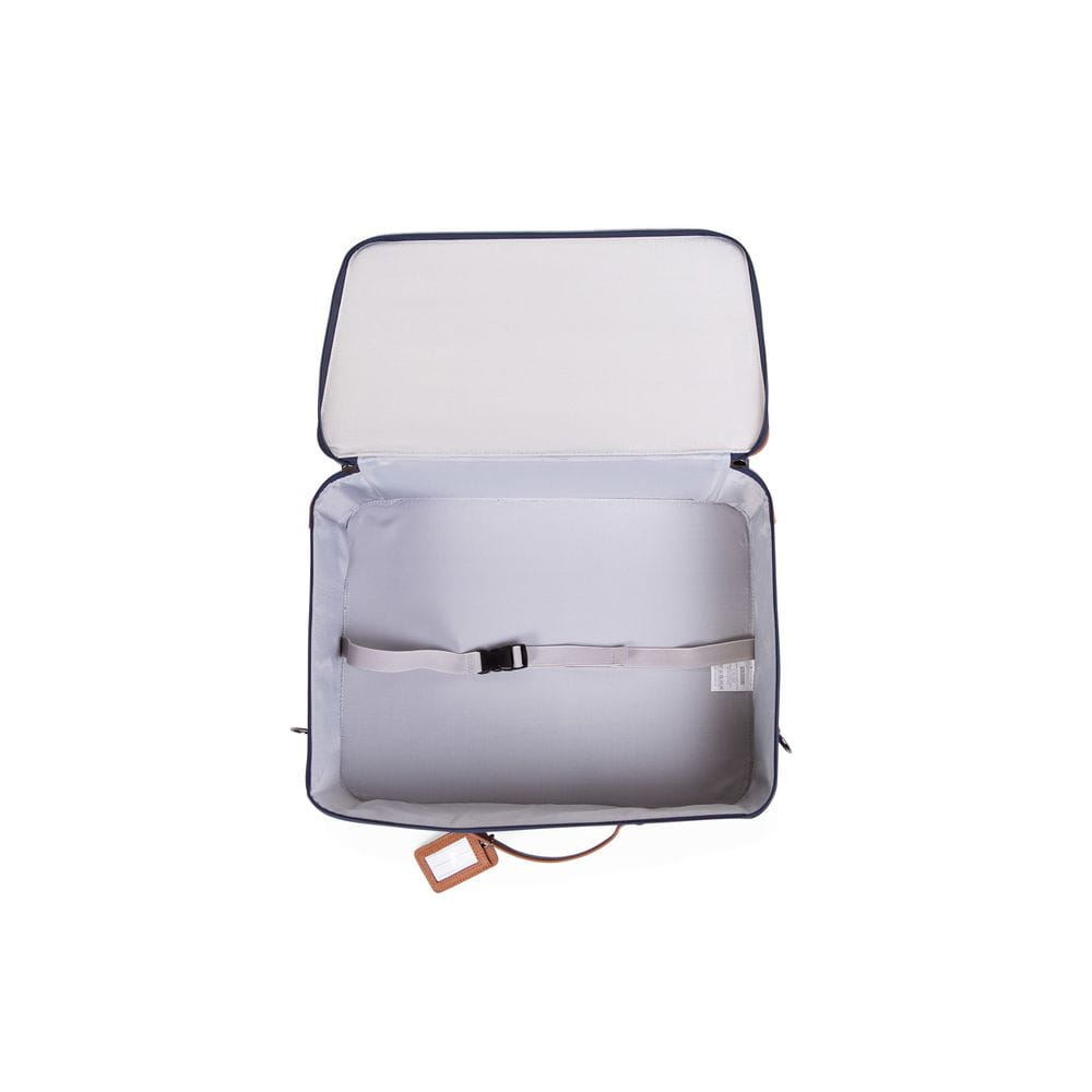 Walizka dla dziecka Childhome świetnie się prezentuje, jest kompaktowa, ale też bardzo pojemna. W środku jest dużo miejsca na ubrania i zabawki, które można zabezpieczyć i posortować gumowym paskiem na klamerkę.