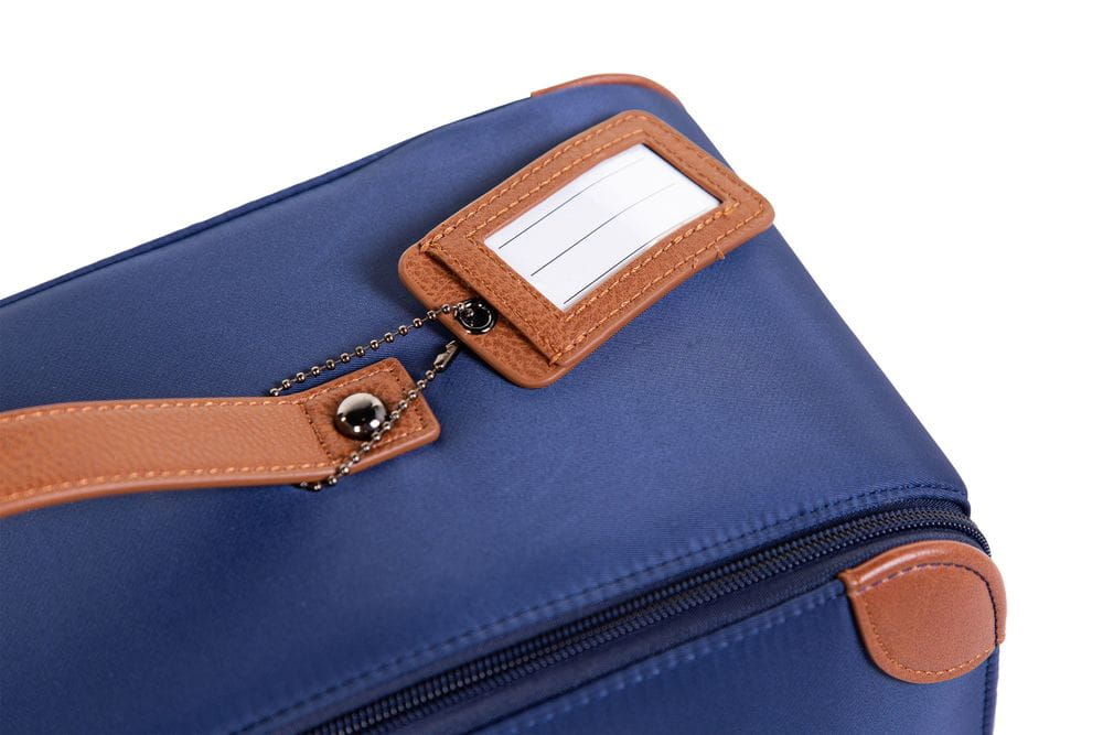 W zestawie jest także pasek, dzięki któremu możemy nosić walizkę jak torbę oraz przywieszka na dane małego właściciela.
